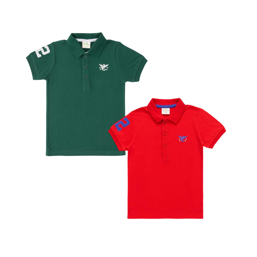Boys' Pack of 2 Polo T-Shirts – Green & Orange with Embroidered Logo