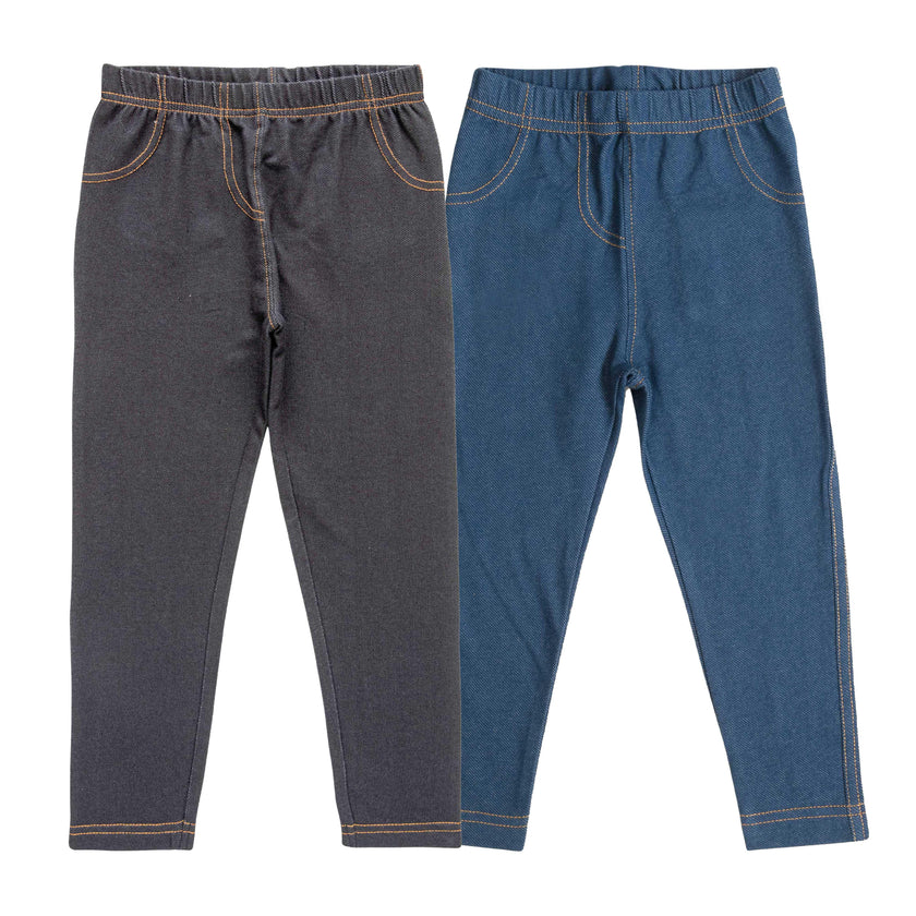 "Girls' Denim-Style Jeggings - Combo Pack of 2 (Black & Blue)"