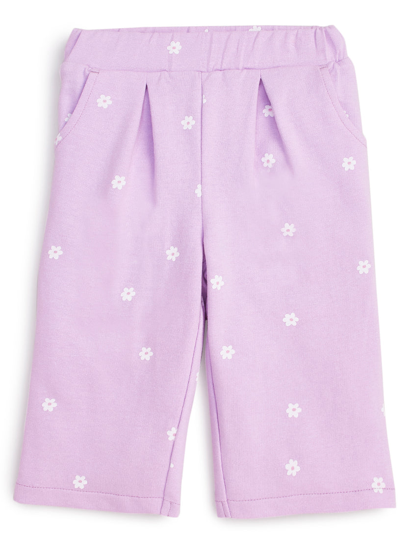 Baby Girls' Lilac Floral Print Culottes – Soft Cotton Blend Summer Pallazzos with Pockets