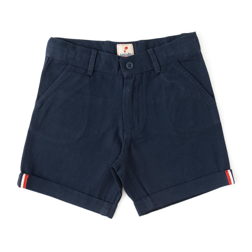 Boys' Classic Navy Blue Cotton Shorts with Button Closure & Cuffed Hem