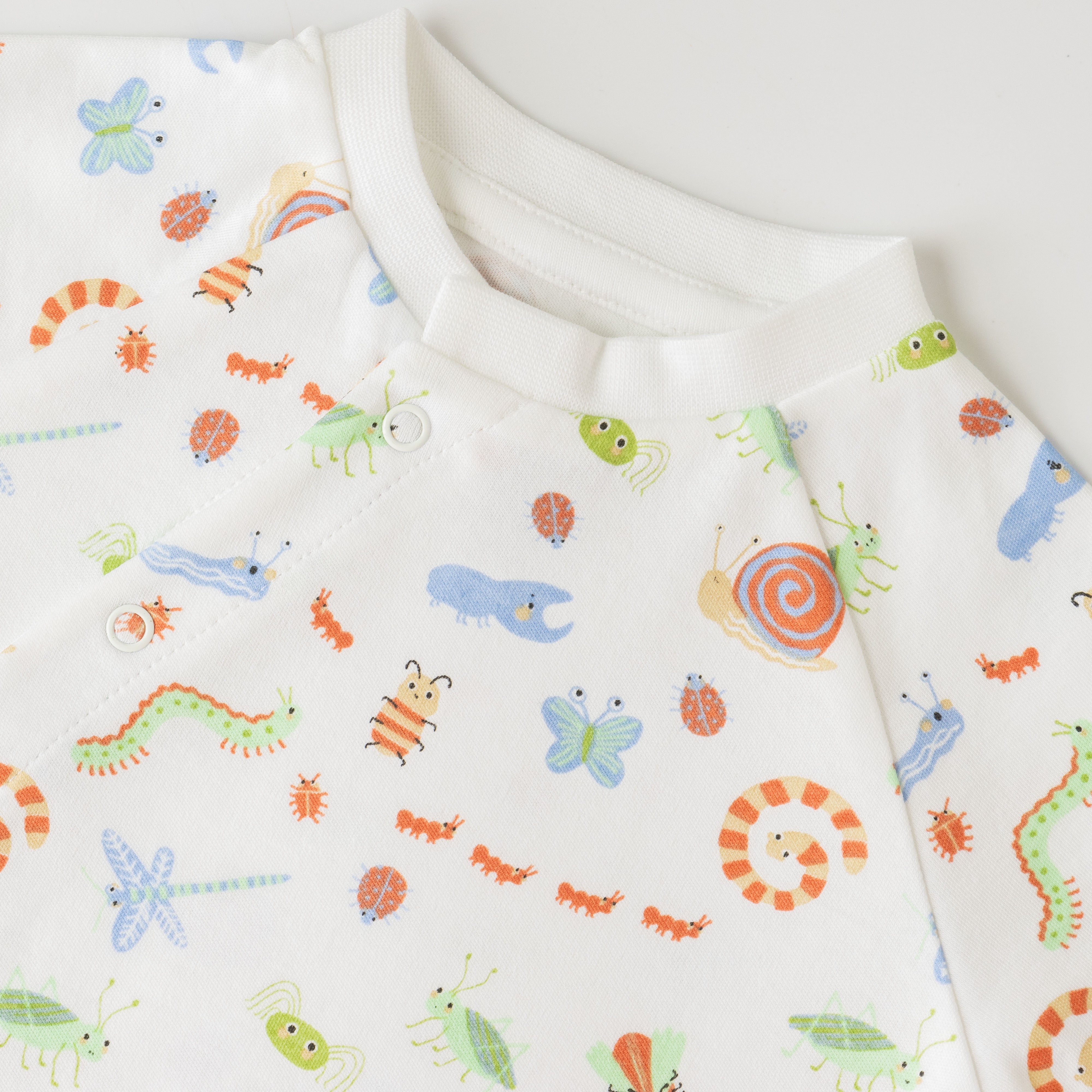 "Baby Boys White Organic Cotton Romper with Colorful Insect Print & Front Snap Buttons"