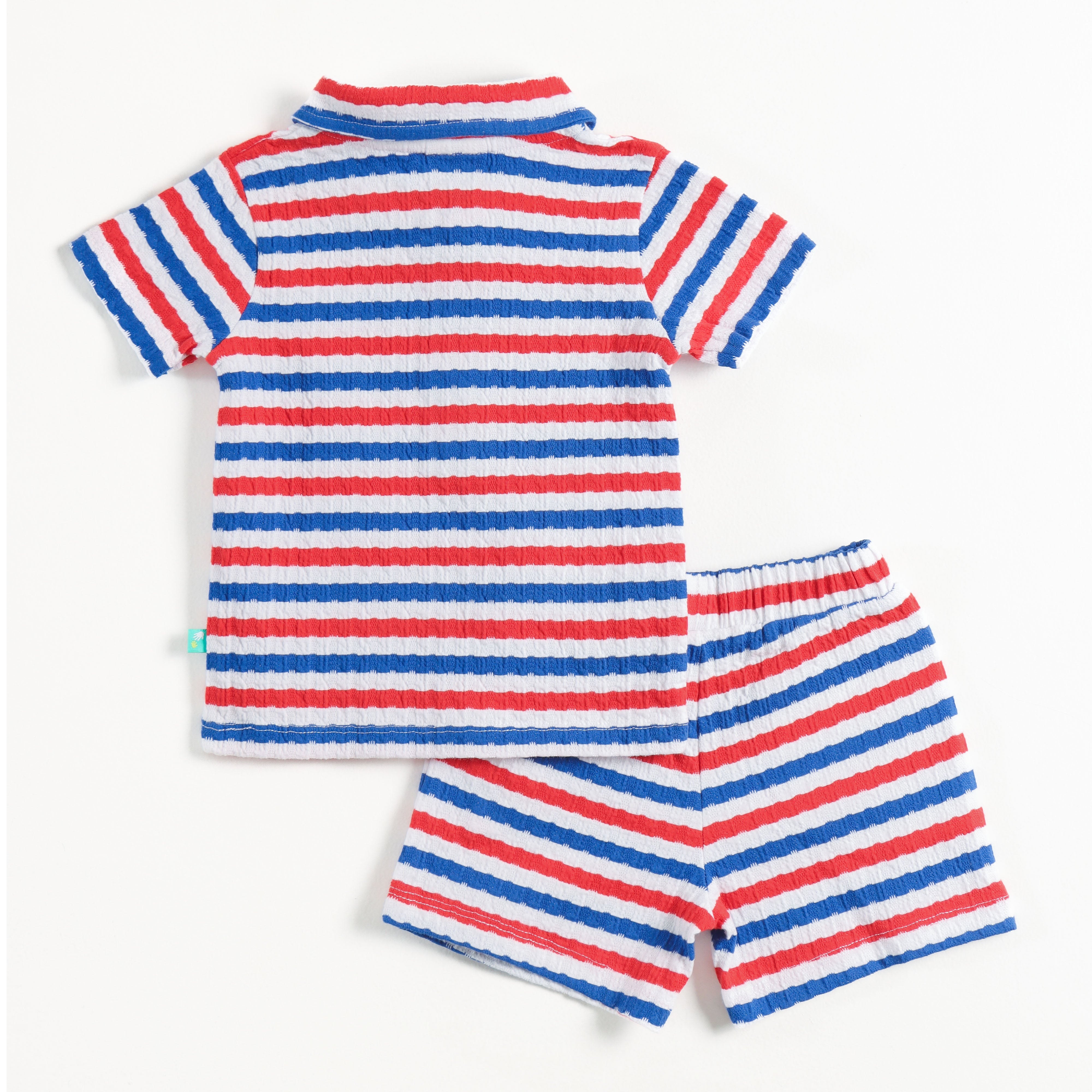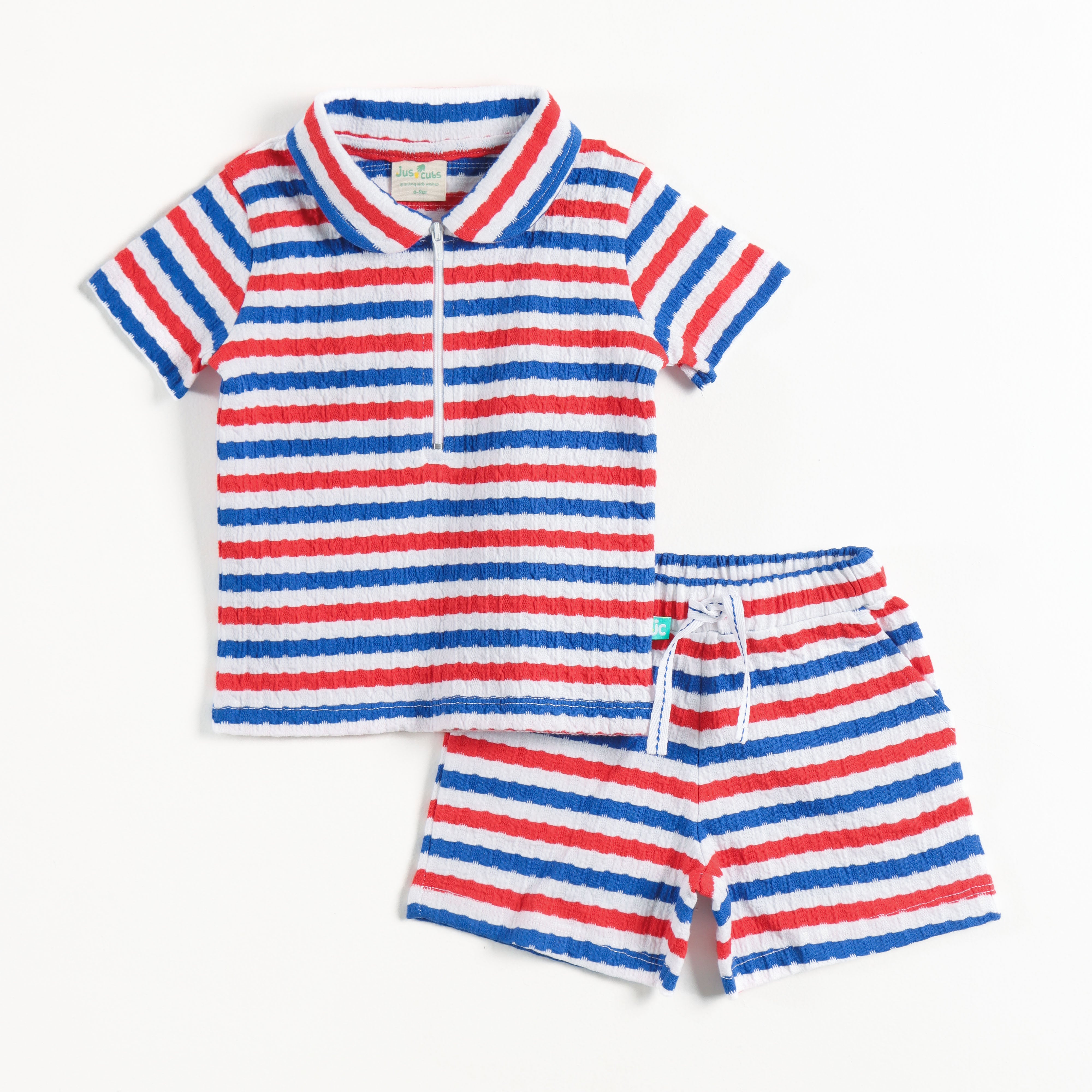 "Baby Boys Half-Sleeve Striped Polo T-Shirt & Elastic Waist Shorts"