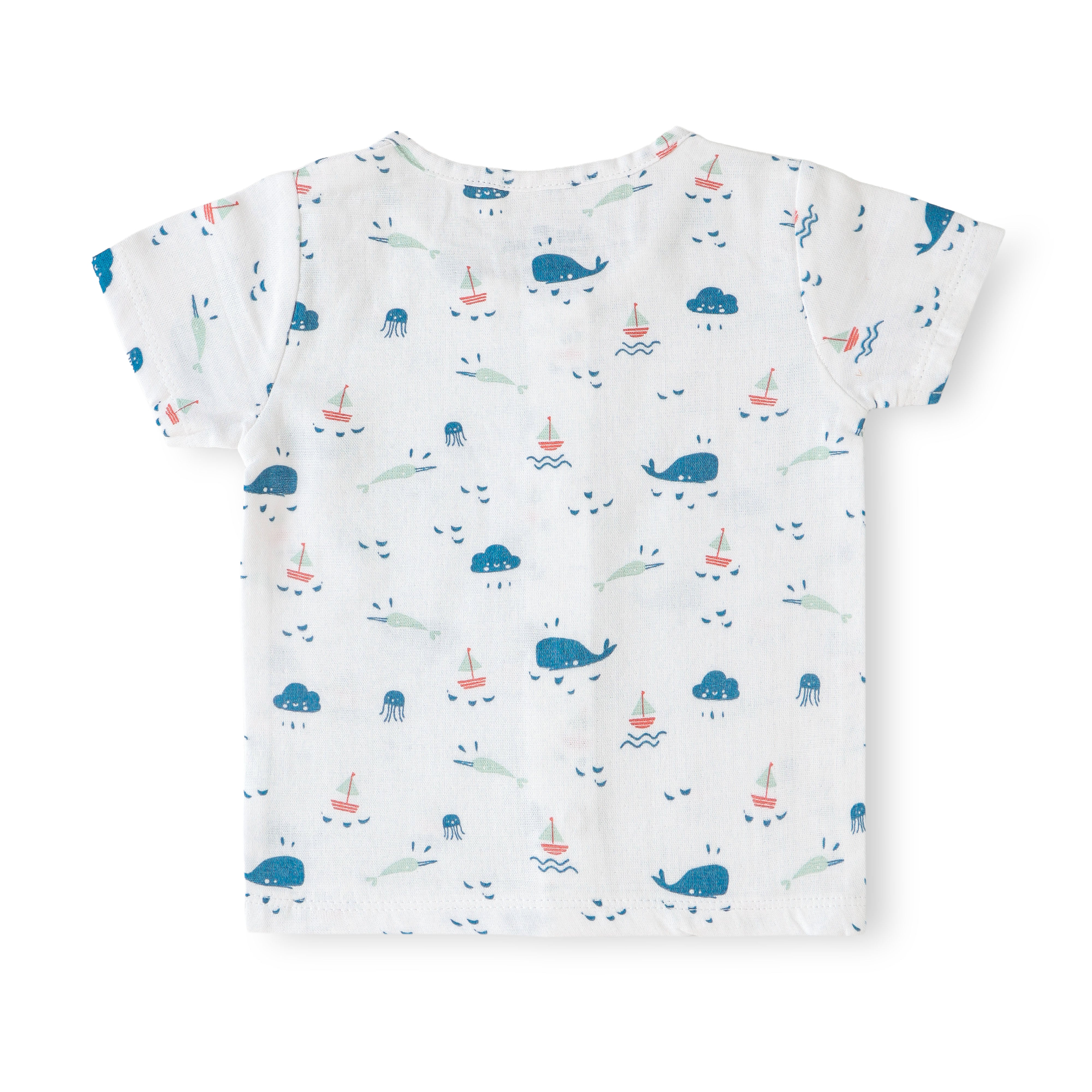 "Baby Boys White Sea Life Print Cotton T-Shirt & Shorts Set"