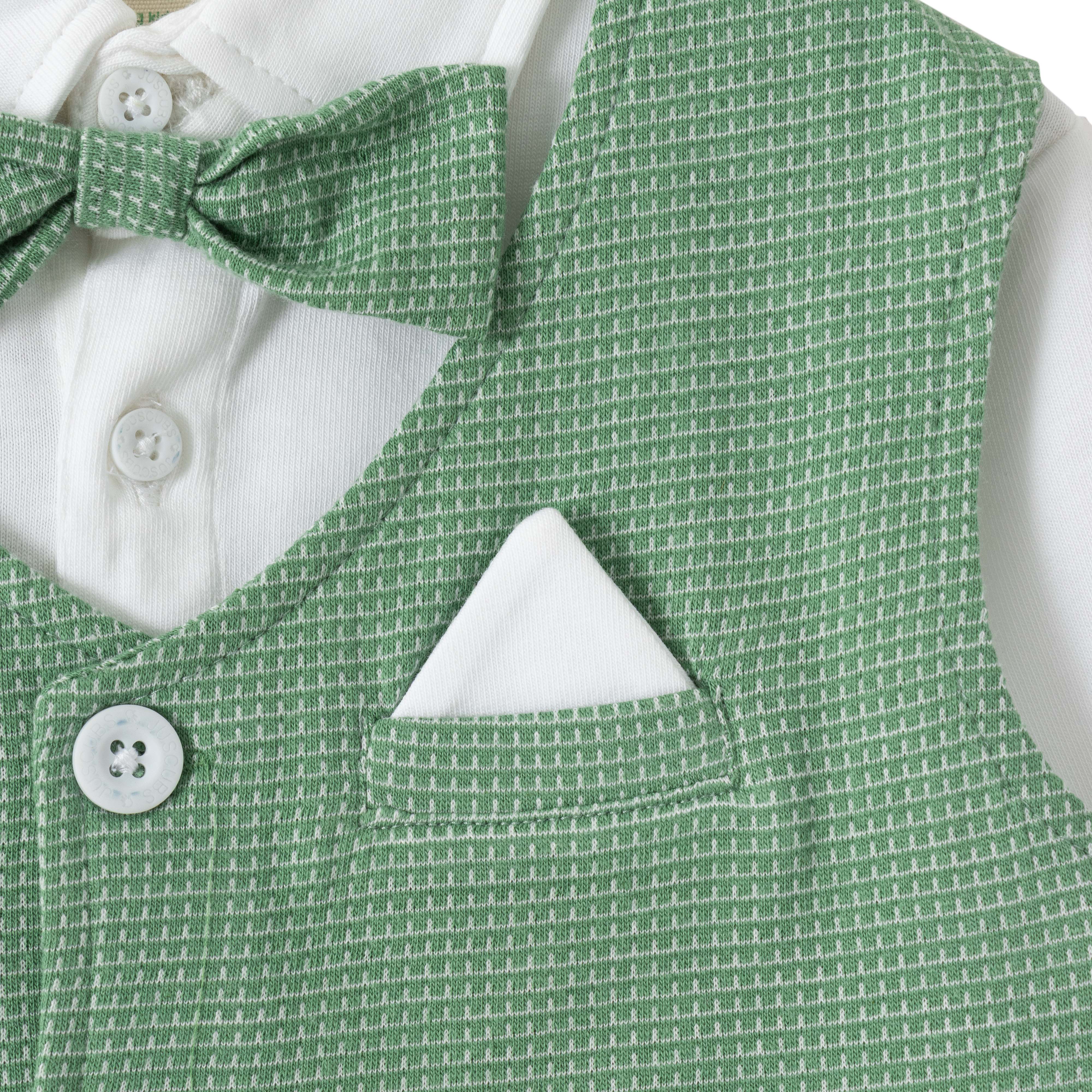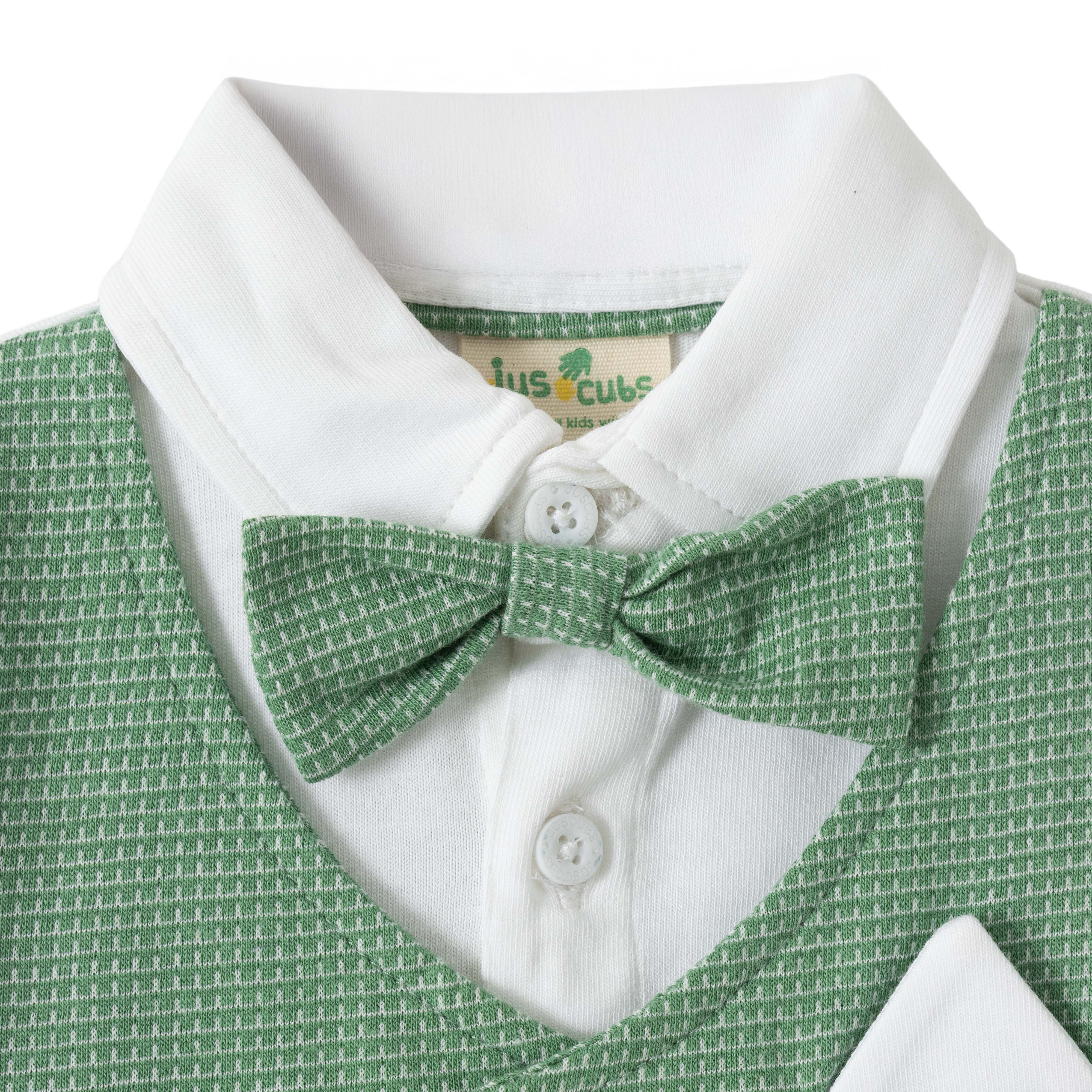 Baby Boys Green Party Wear 3-Piece Set – Shirt, Waistcoat & Bow Tie with Pants