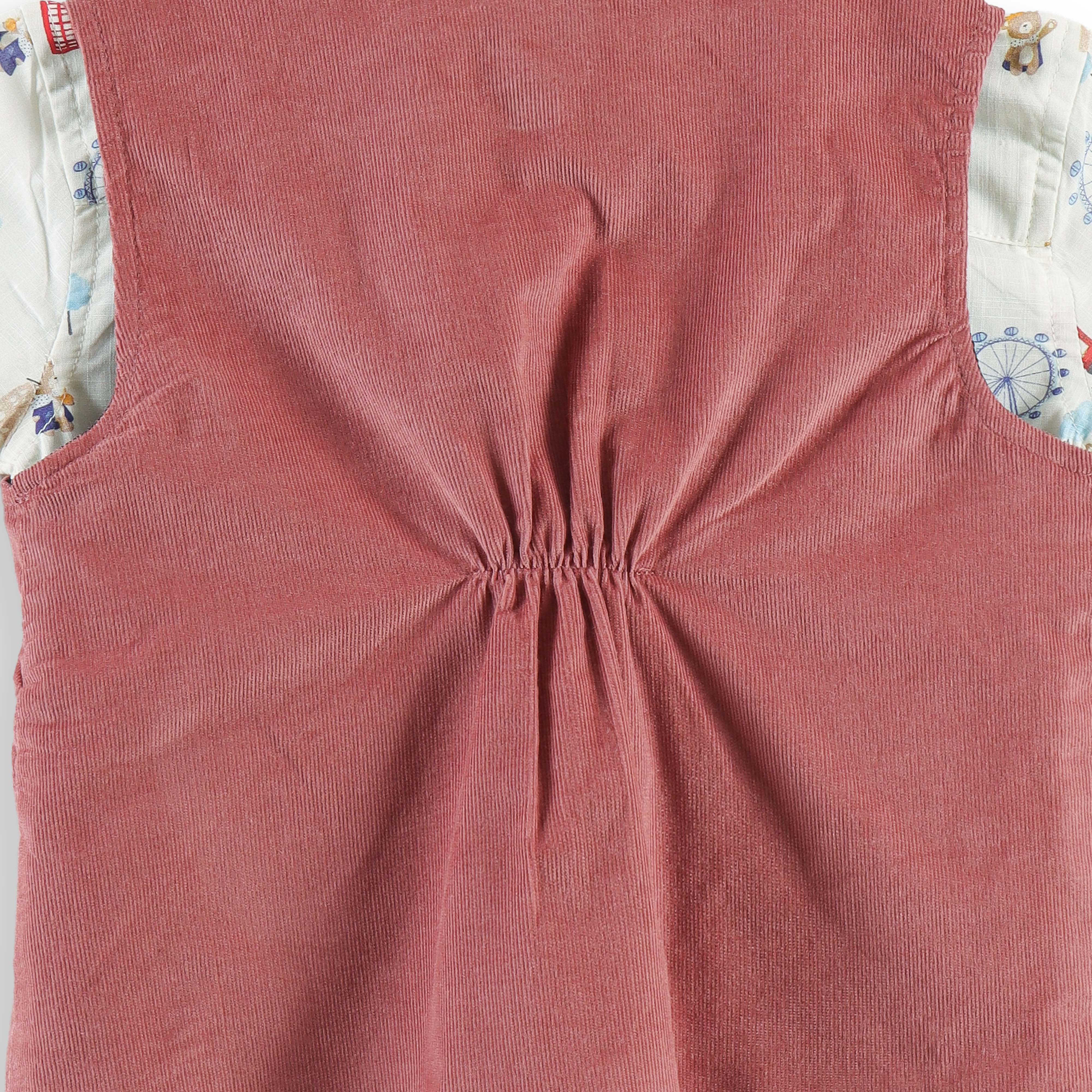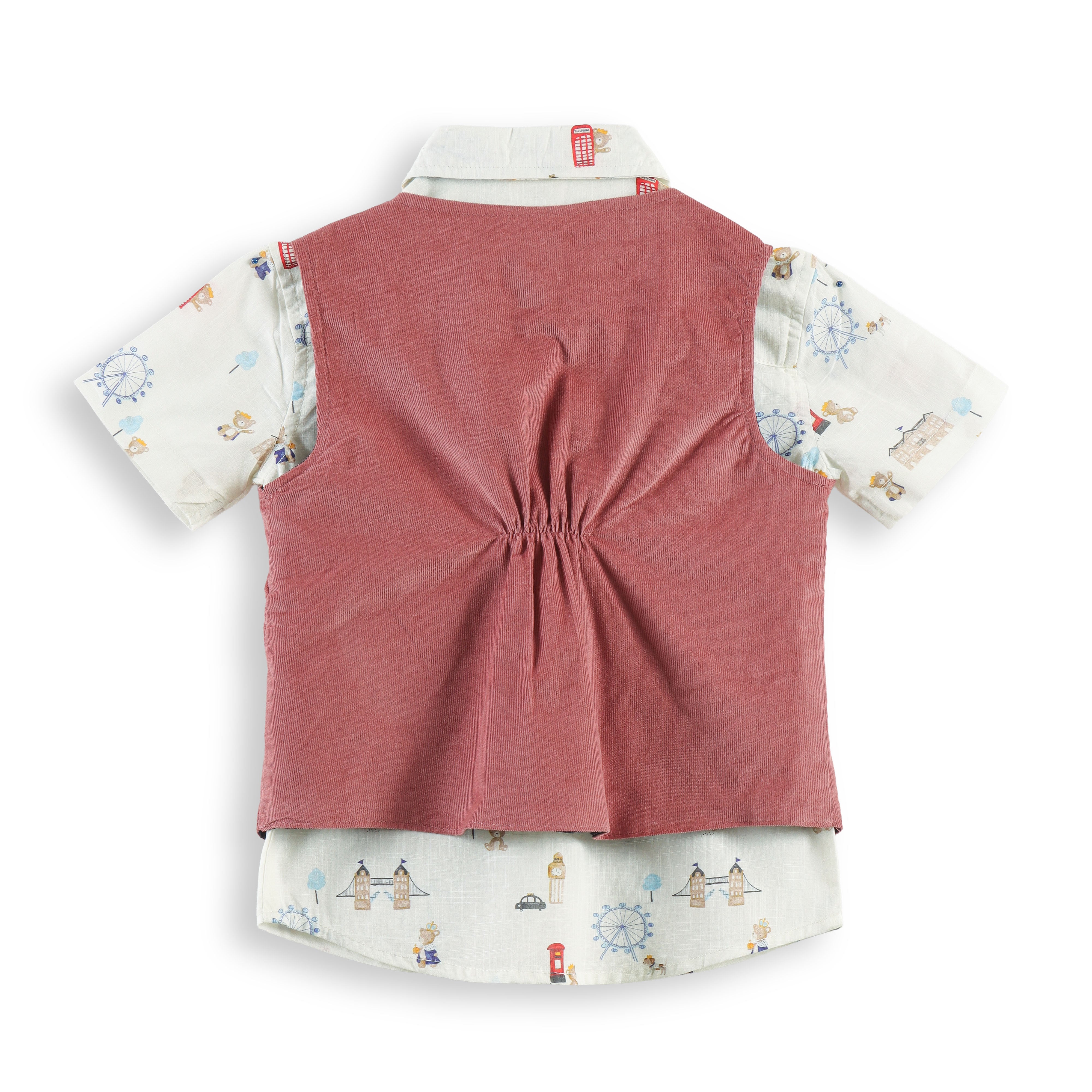 "Baby Boys Rust Corduroy Waistcoat & Pant Set with Printed Shirt & Bow Tie"