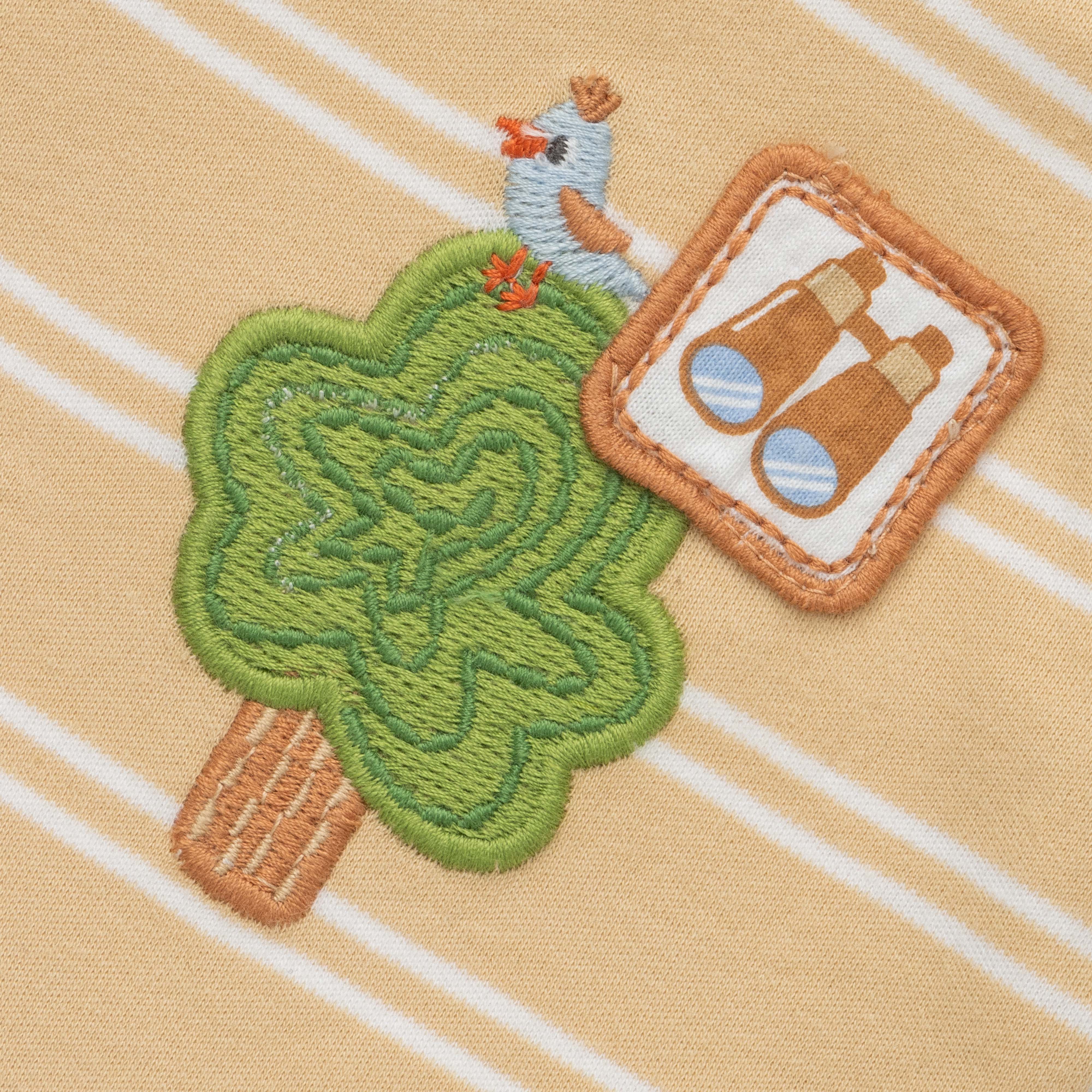"Baby Boys Organic Cotton Beige Striped Sleeveless Bodysuit with Tree & Bird Patch"