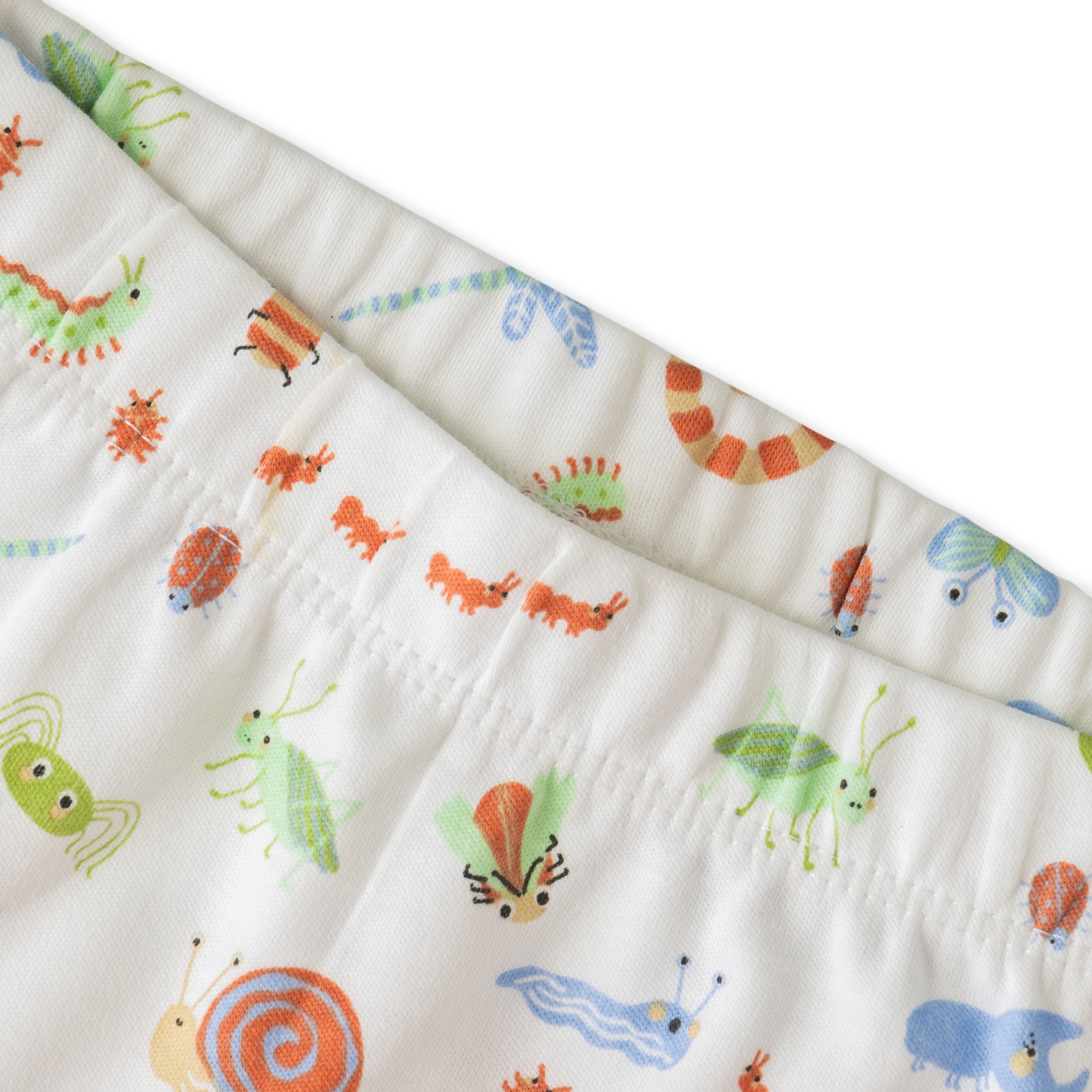 "Baby Boys White Organic Cotton Track pant with Colorful Insect Print & Elastic Waist"