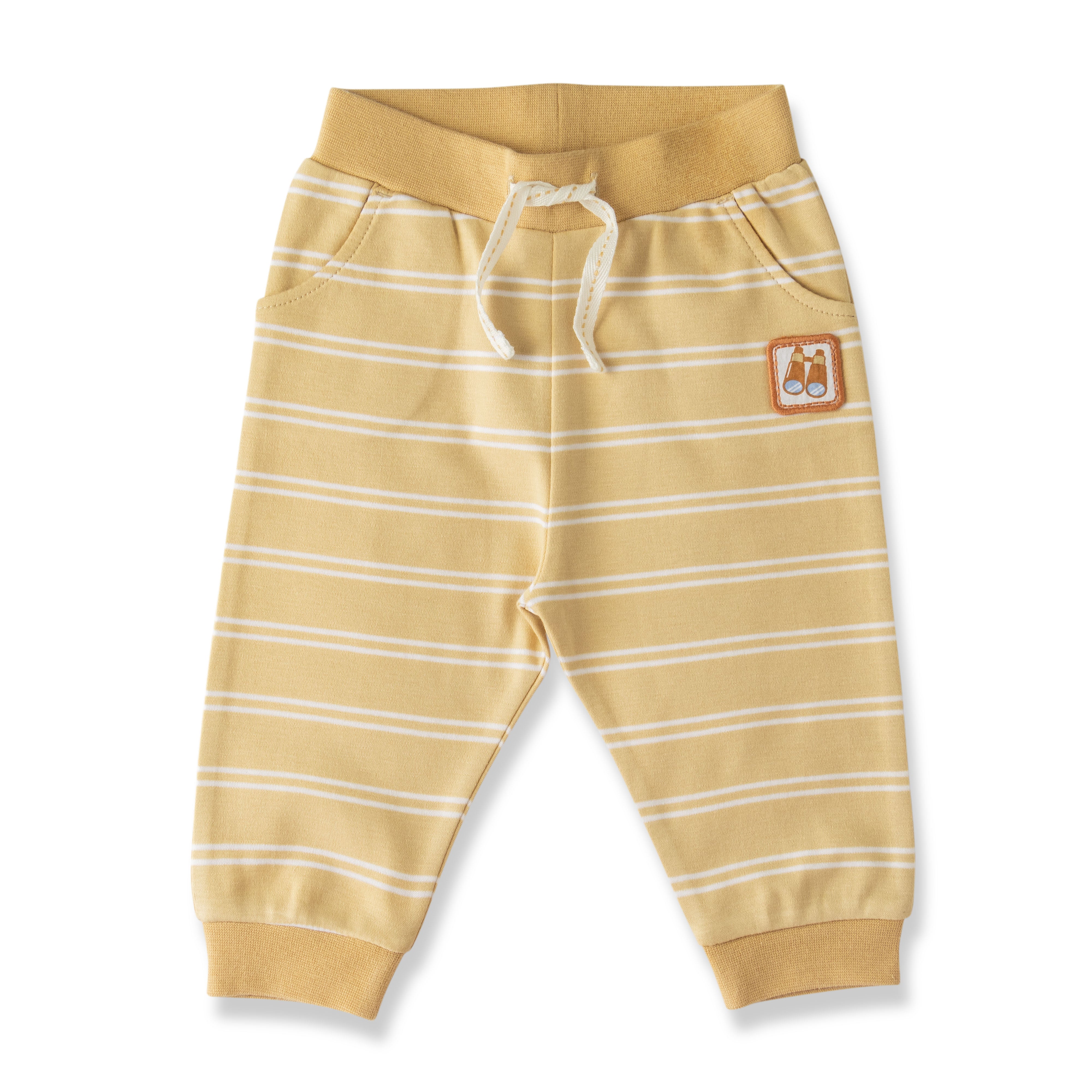 "Baby Boys Beige Striped Organic Cotton Jogger Pants with Drawstring"