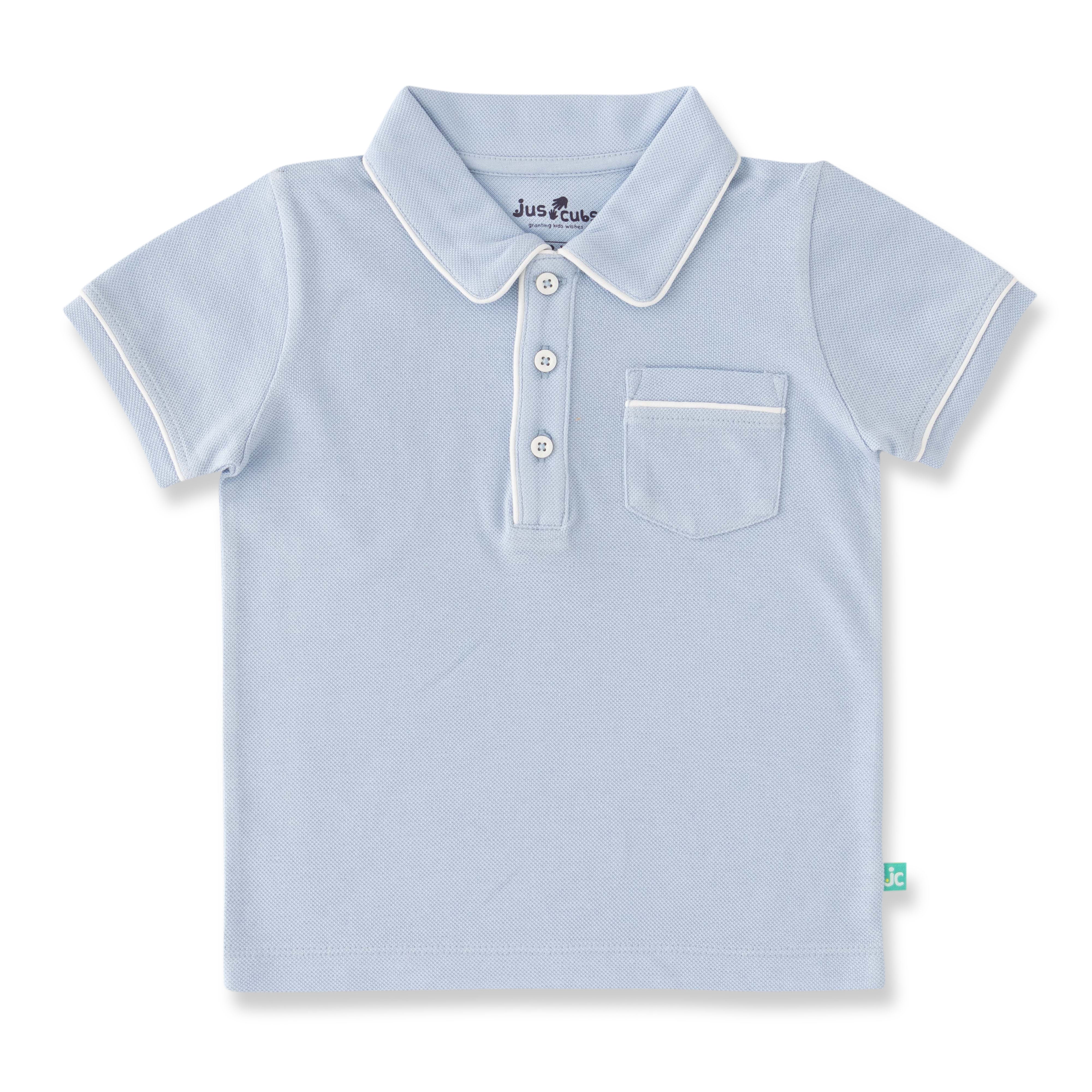 "Baby Boys Organic Cotton Sky Blue Polo T-Shirt & Shorts Set – Casual Summer Outfit"