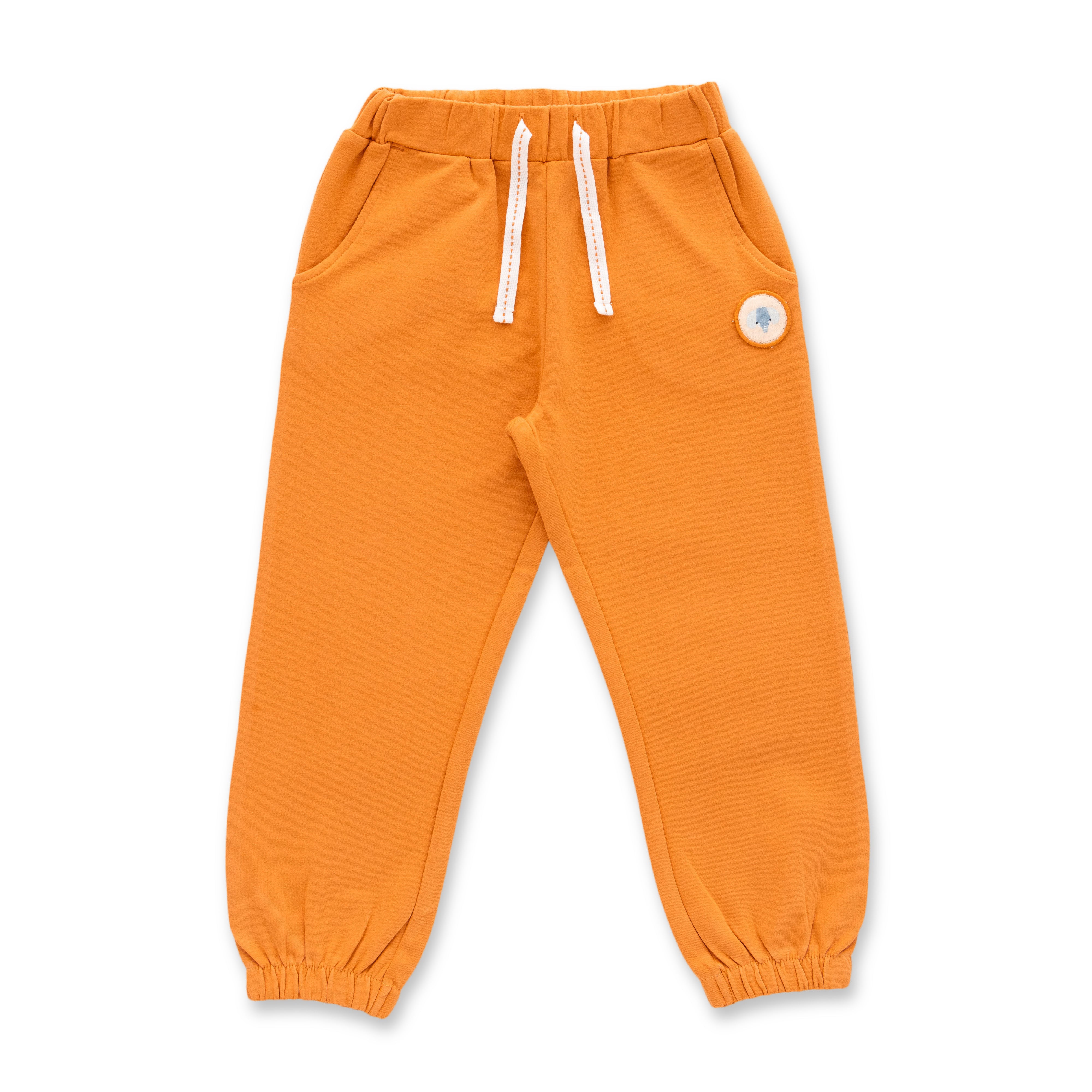 "Baby Boys Organic Cotton Printed T-Shirt with Pocket & Solid Jogger Pants Set – White & Orange"