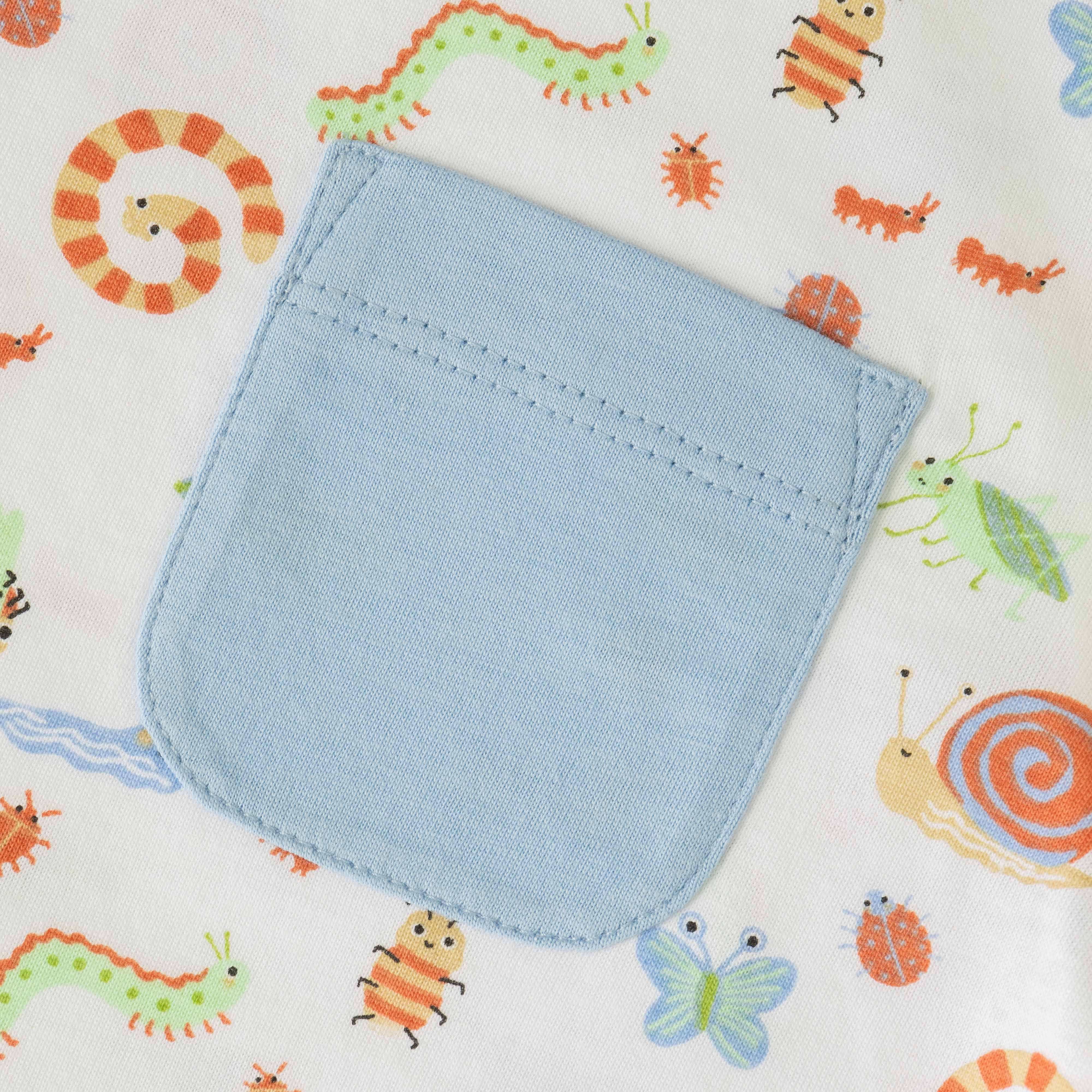 "Baby Boys White Organic Cotton T-Shirt with Colorful Insect Print & Blue Pocket"