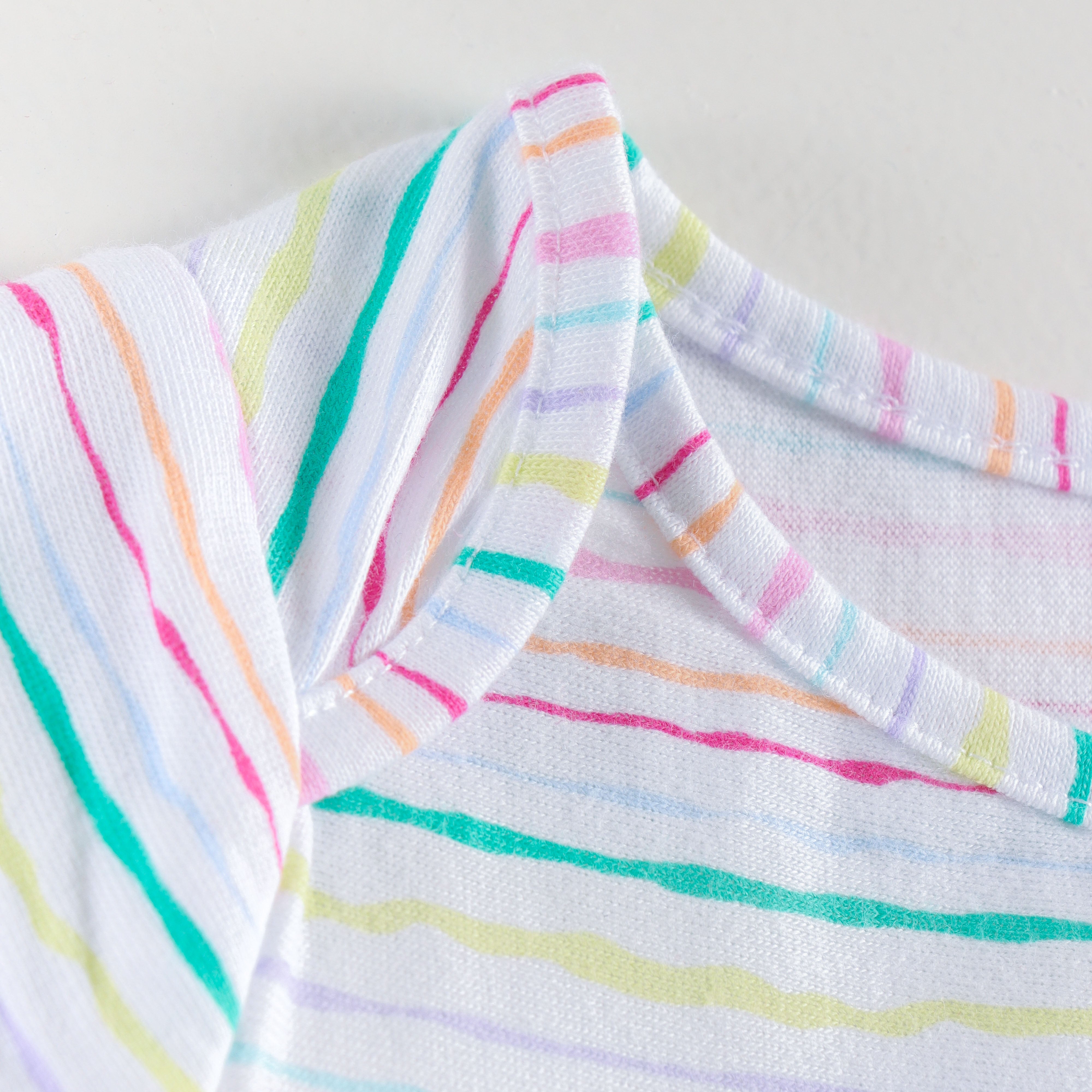 "Baby Girls Soft Cotton Tee Set – 2-Pack | Pink Check Rainbow & Multicolor Stripes"