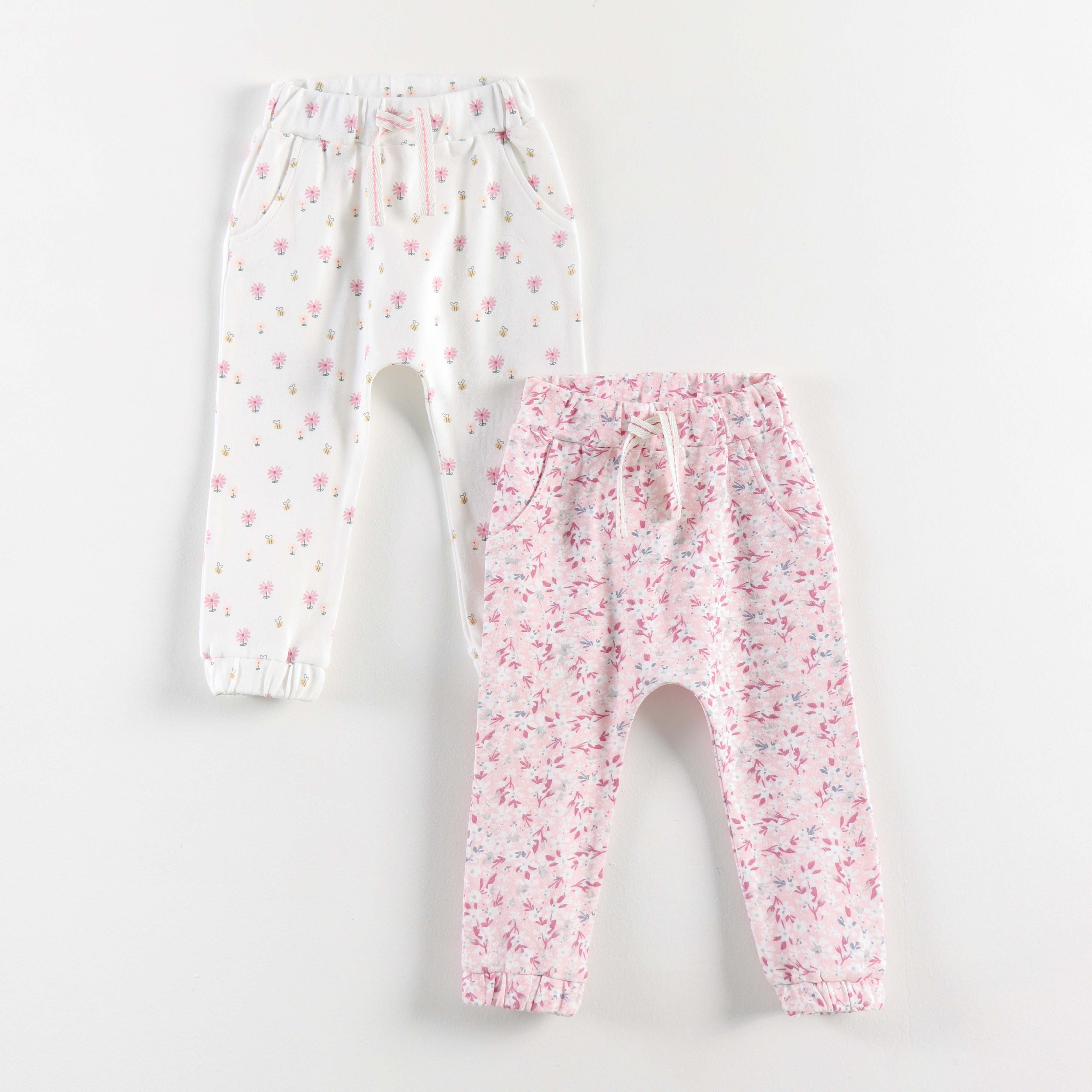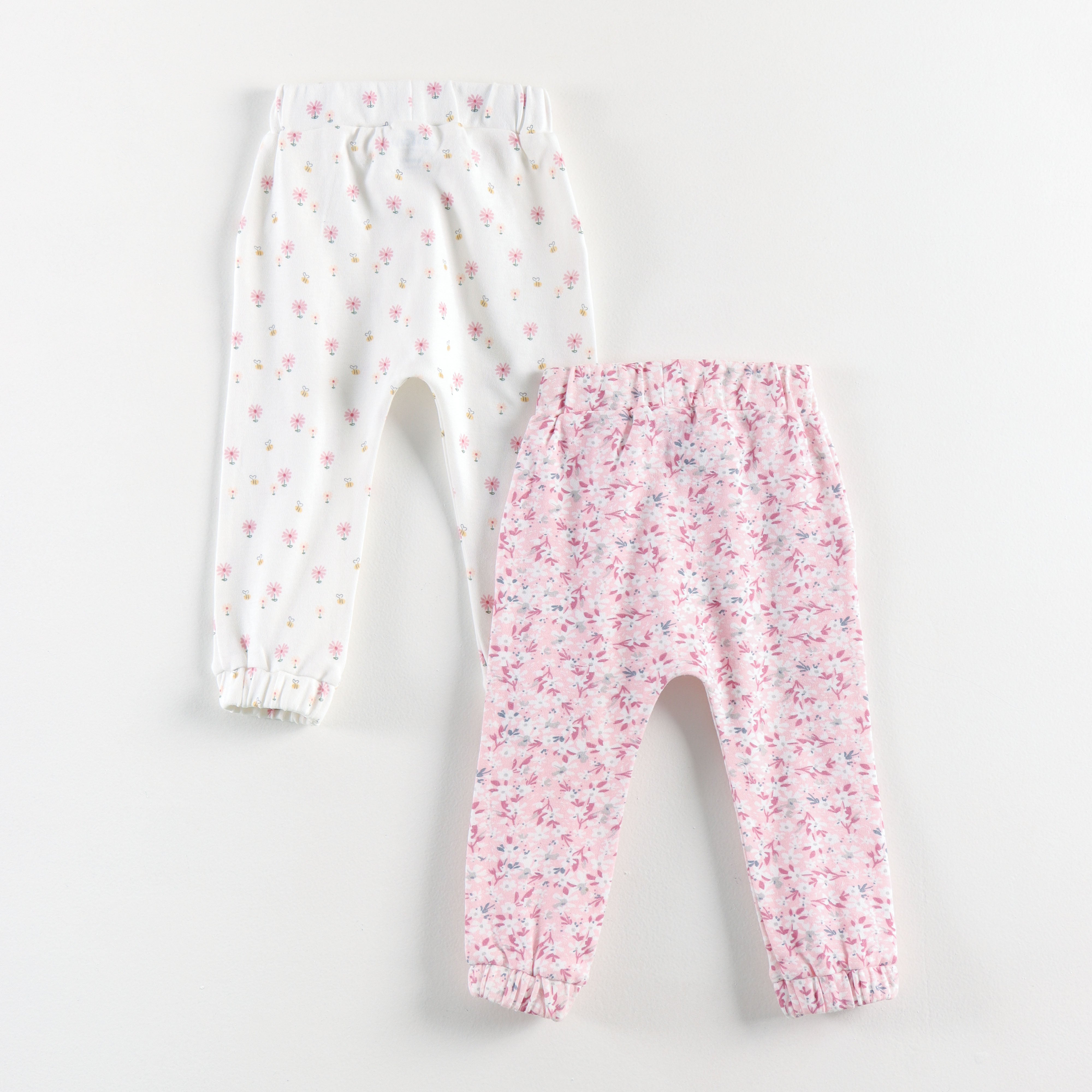 "Baby Girls Soft Cotton Track Pants – 2-Pack | All-Over Floral Prints"