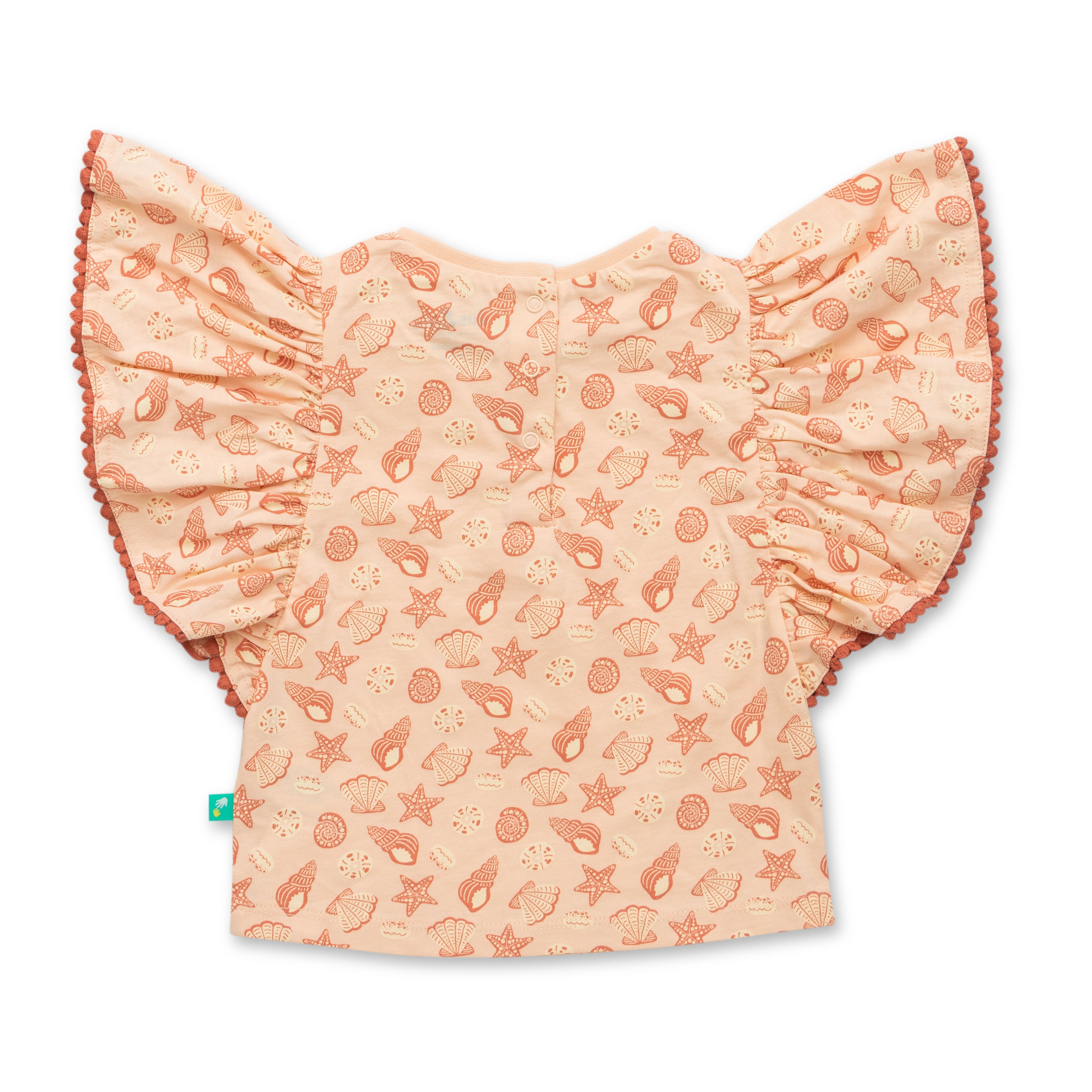 "Baby Girls Organic Cotton Pink Top with Seashell & Starfish Print and Ruffle Sleeves"