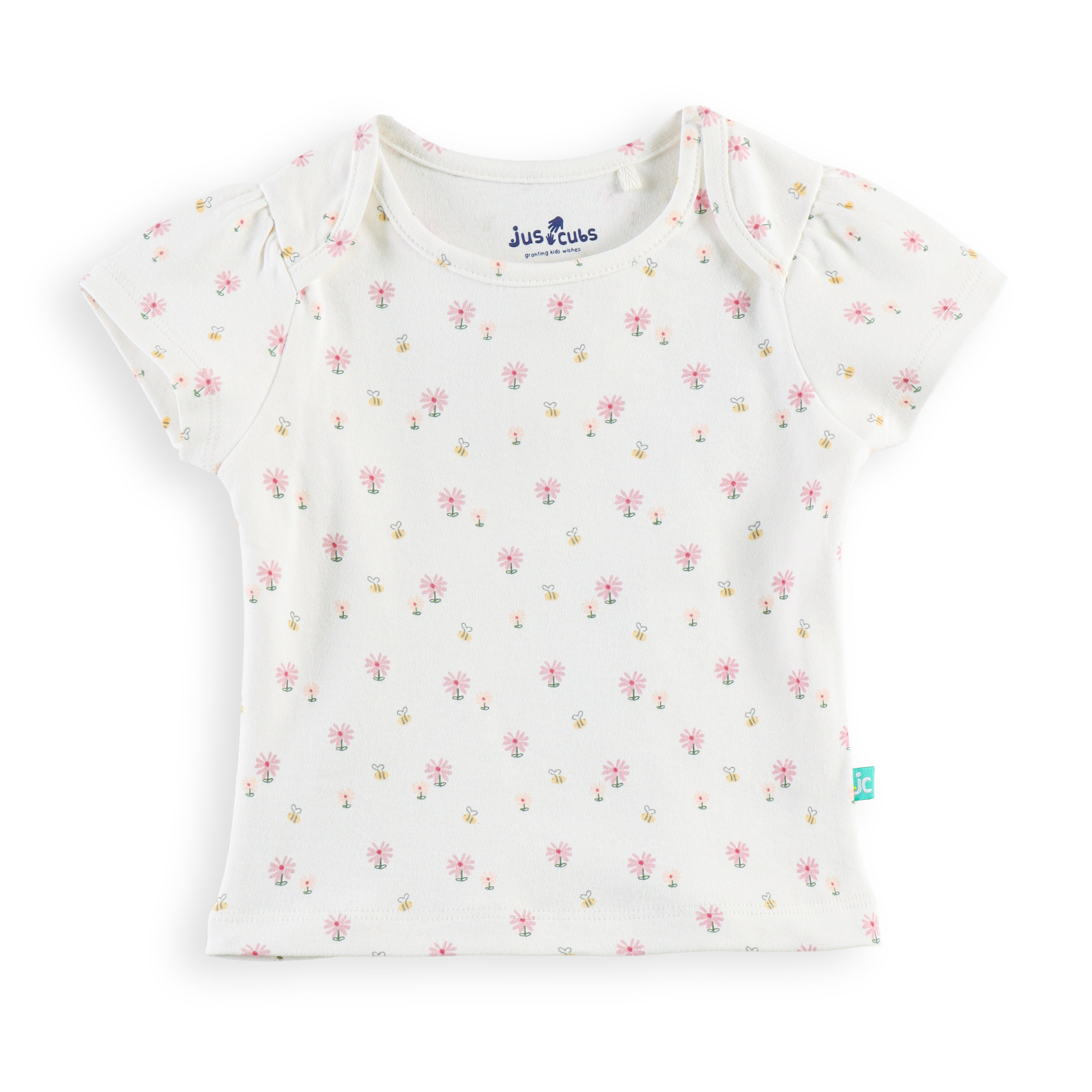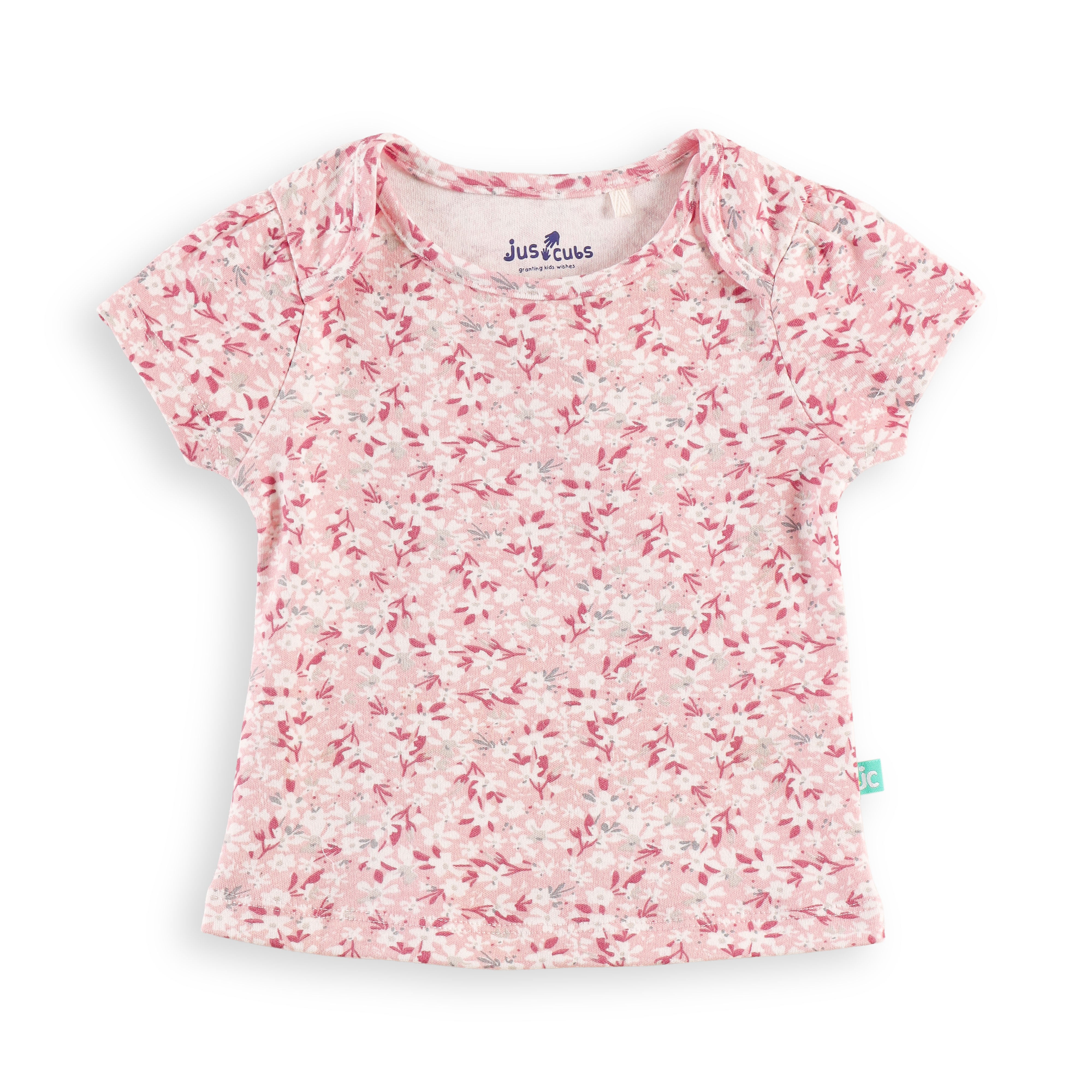 "Baby Girls Combo of 2 Cotton Tees with All-Over Floral Prints – Soft, Breathable & Stretchable"