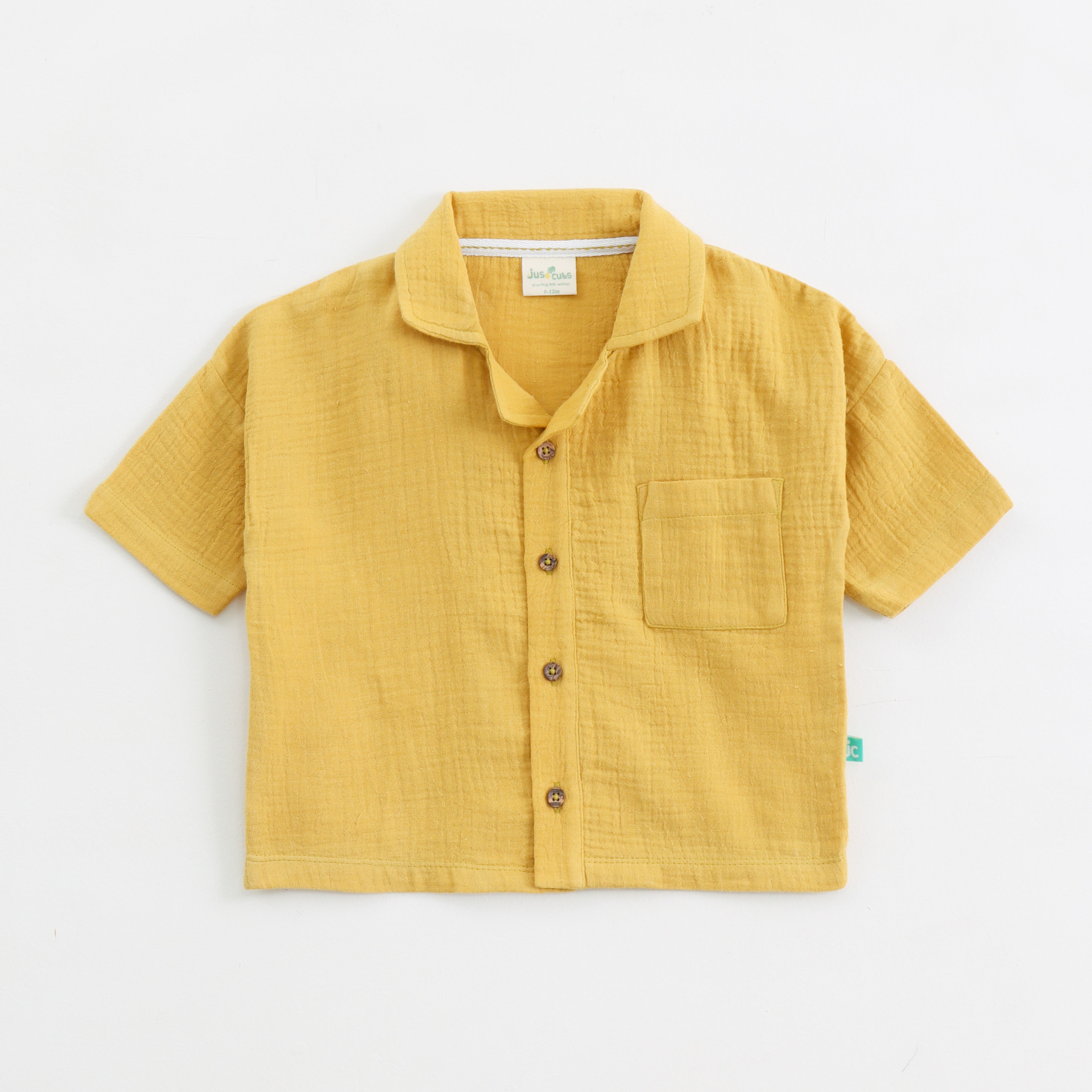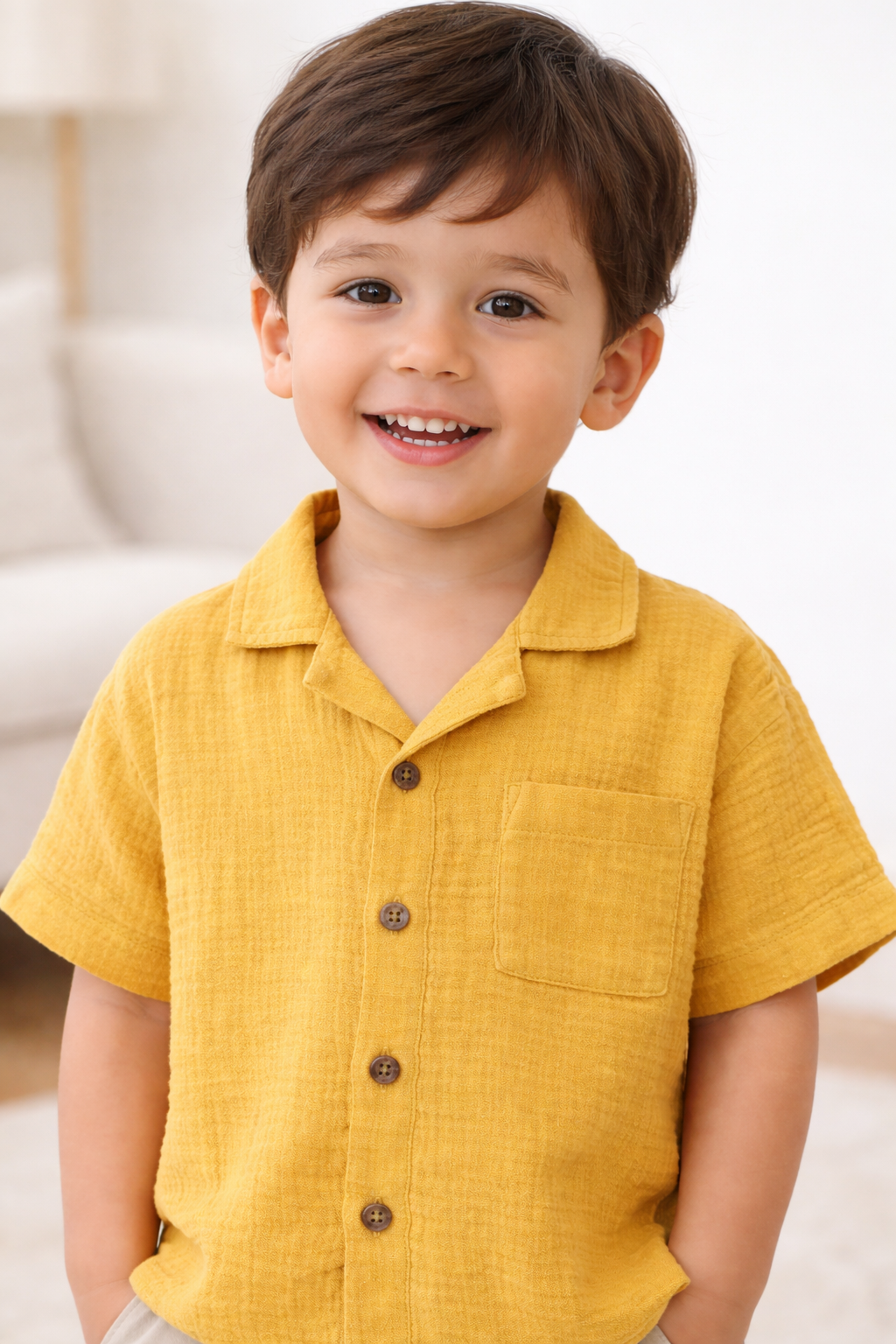 "Baby Boys Premium Muslin Cotton Shirt | Mustard | Lightweight & Breathable"