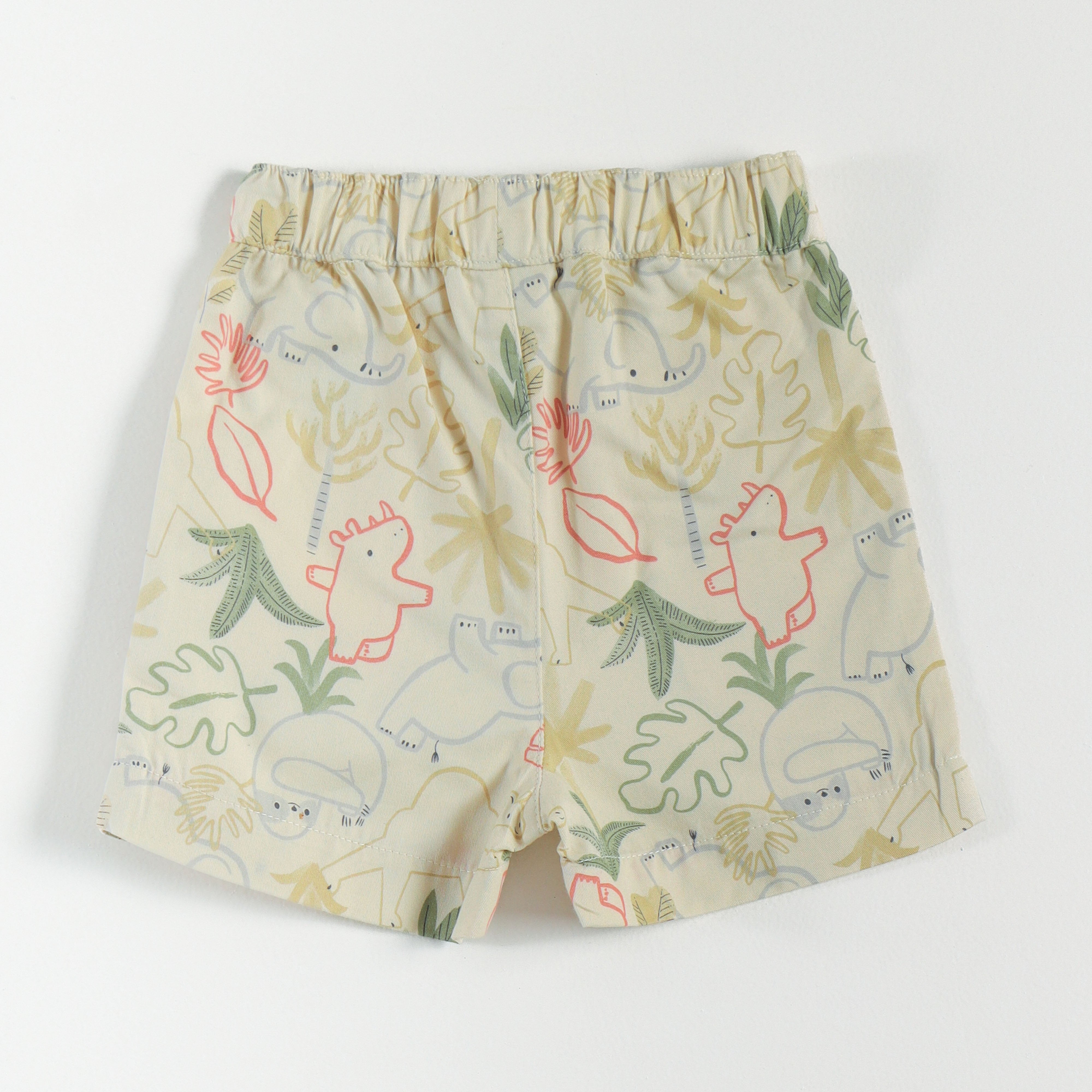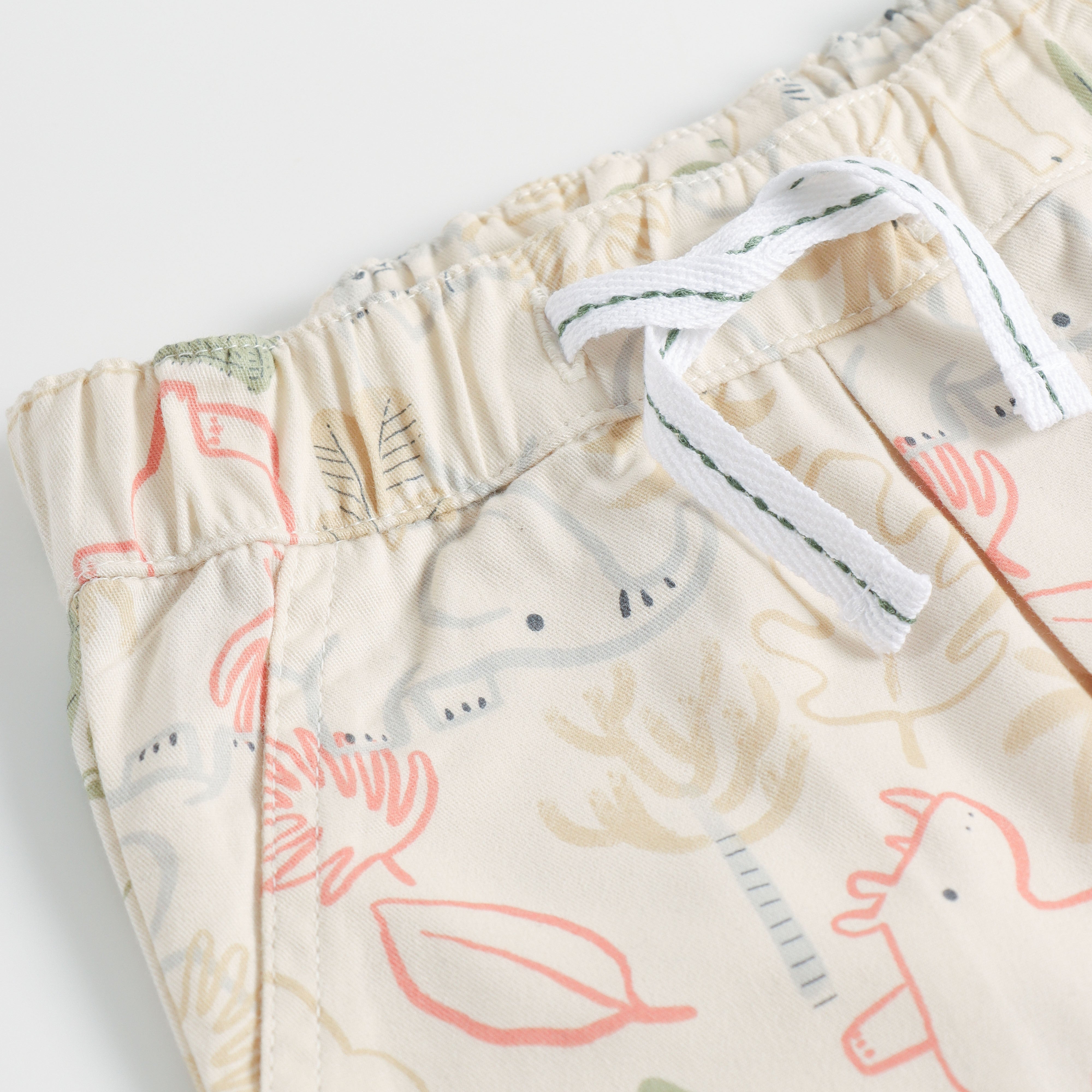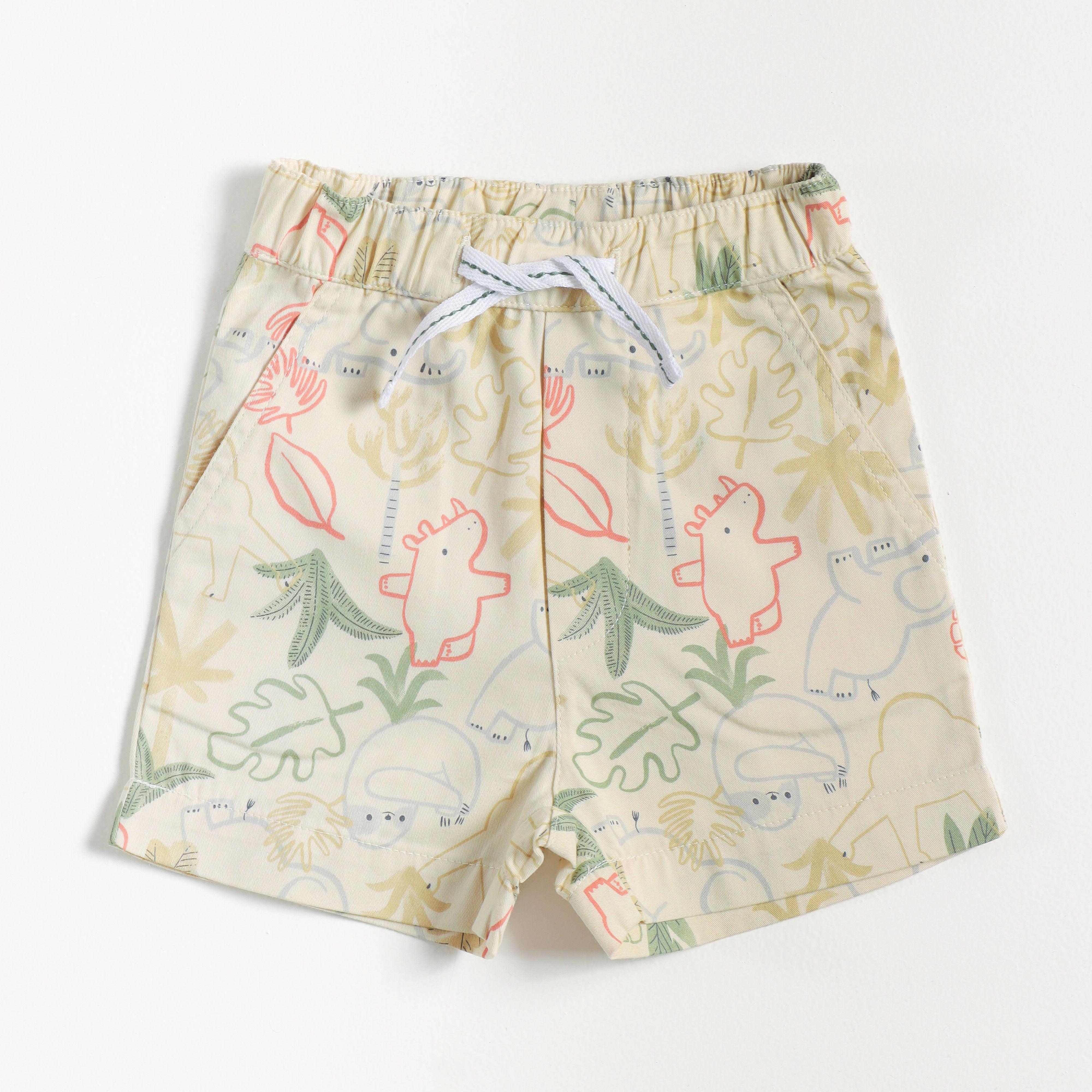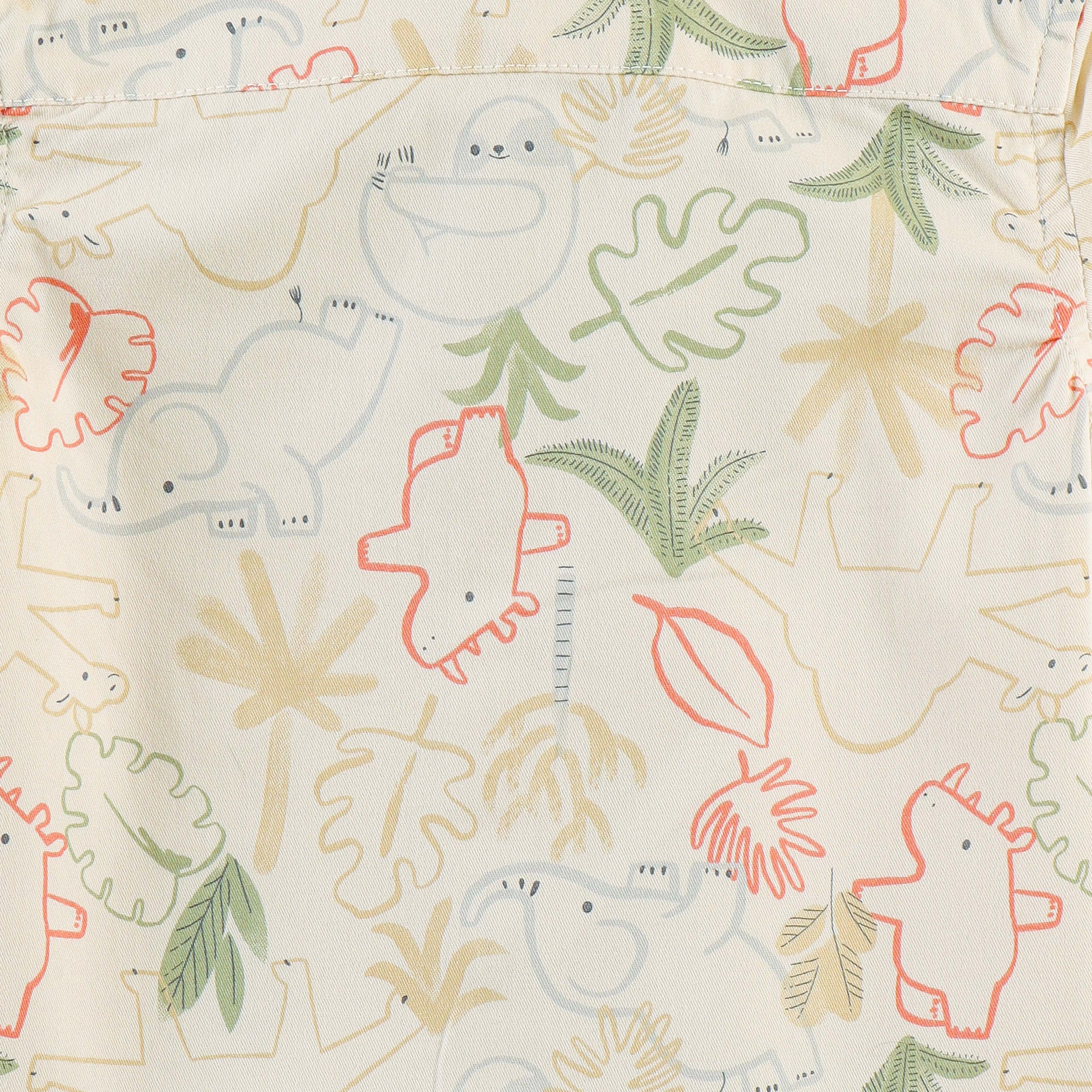“Baby Boys Cream Dinosaur Print Cotton Shirt & Shorts Co-Ord Set – Soft, Breathable Summer Wear Outfit"