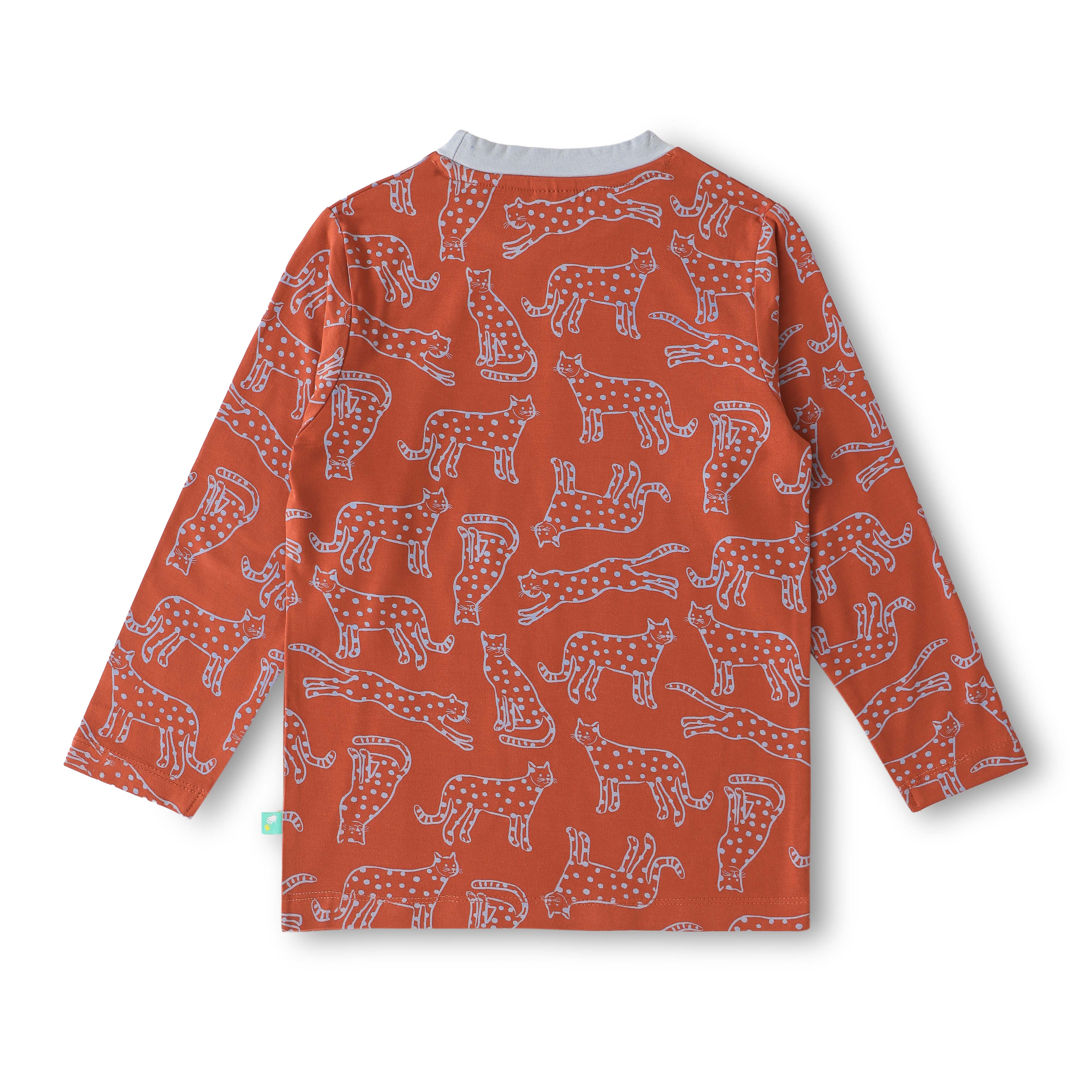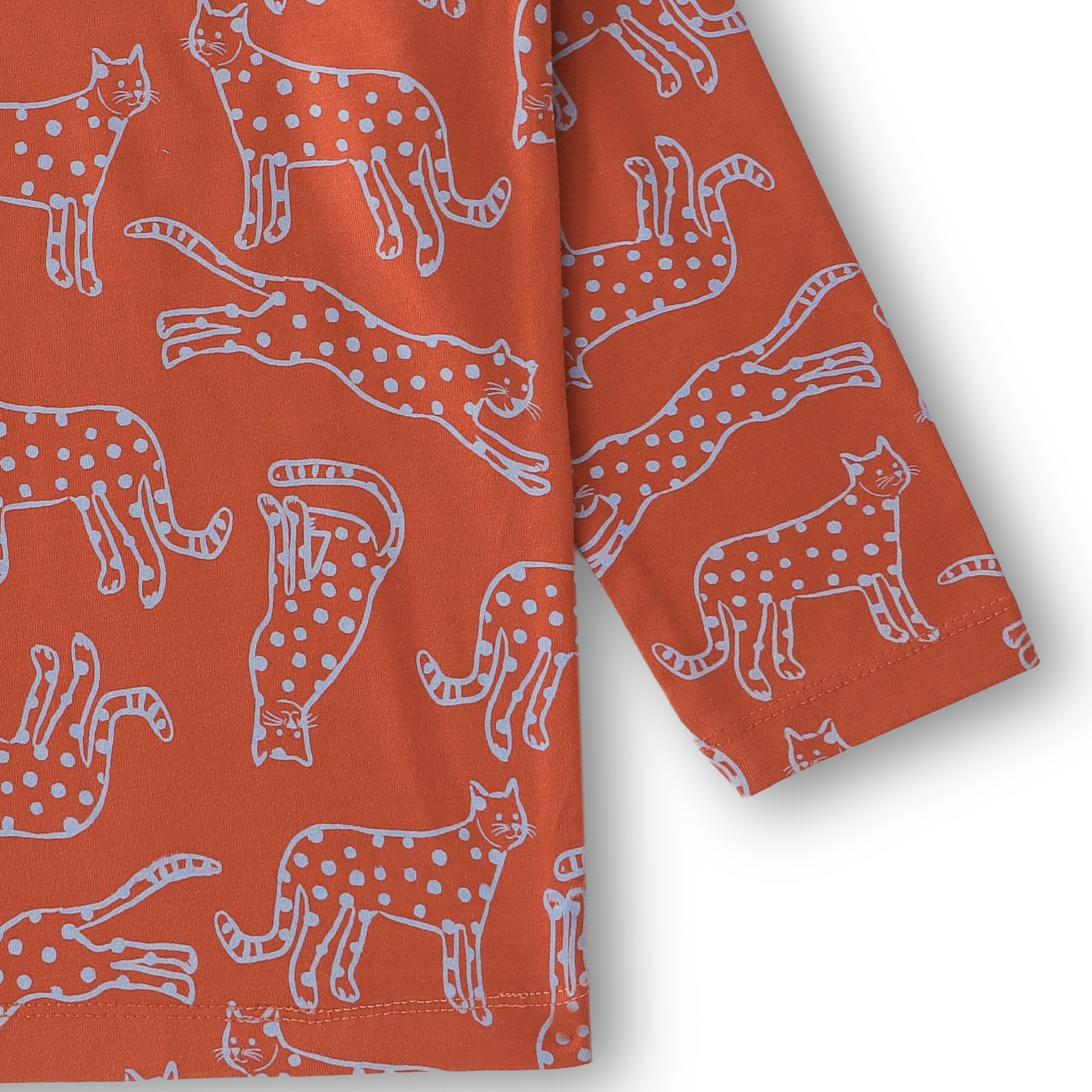"Boys Rust Orange Leopard Print Nightwear Set – 100% Cotton Comfort Fit"