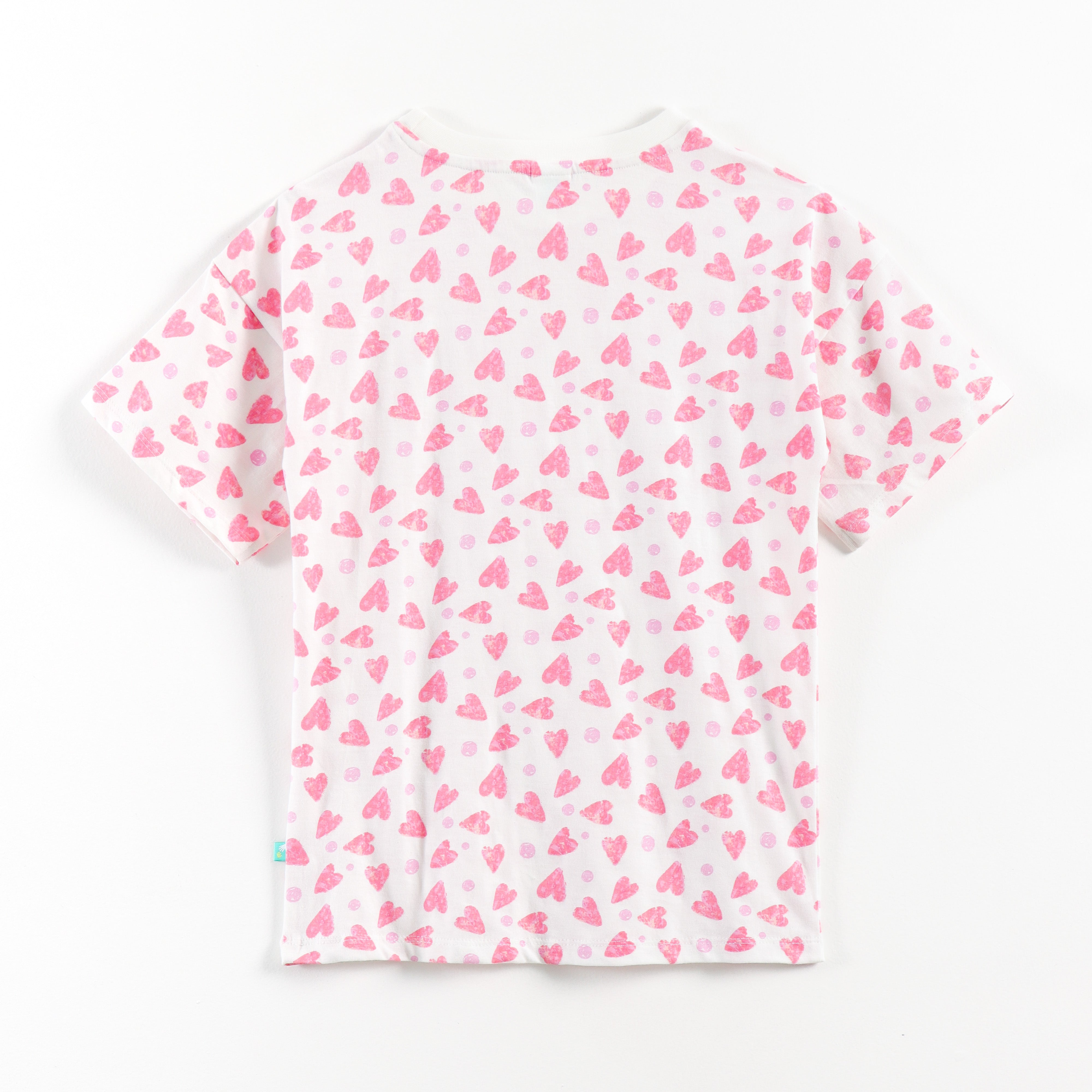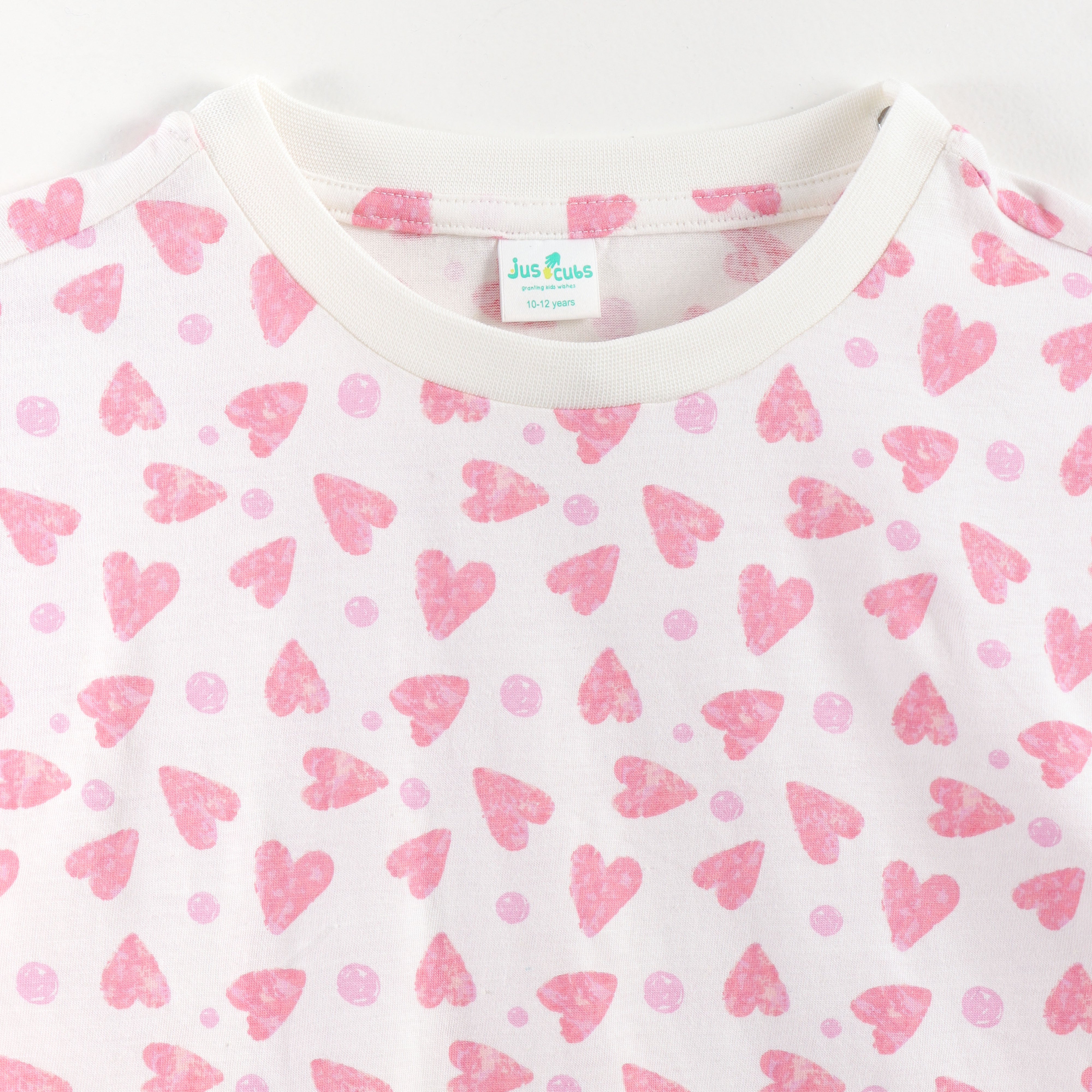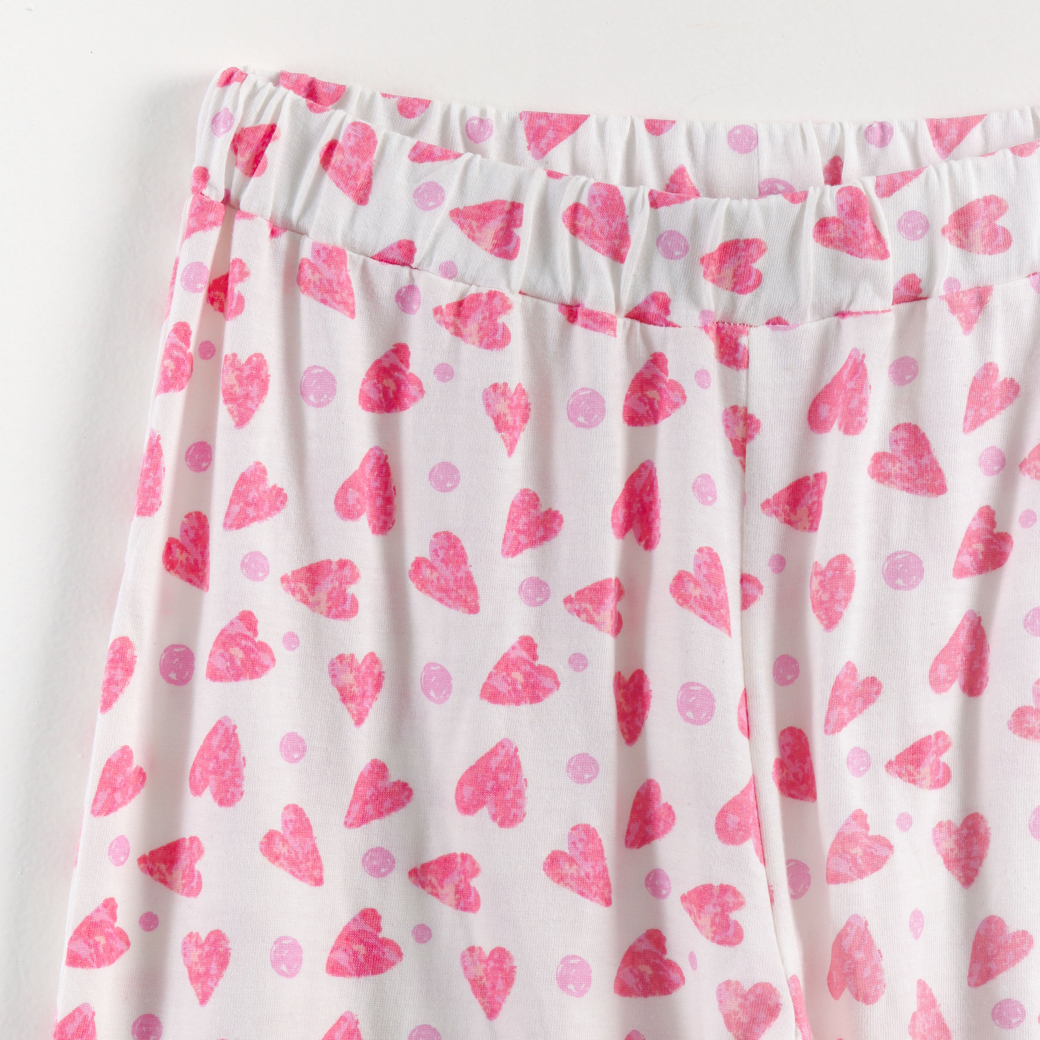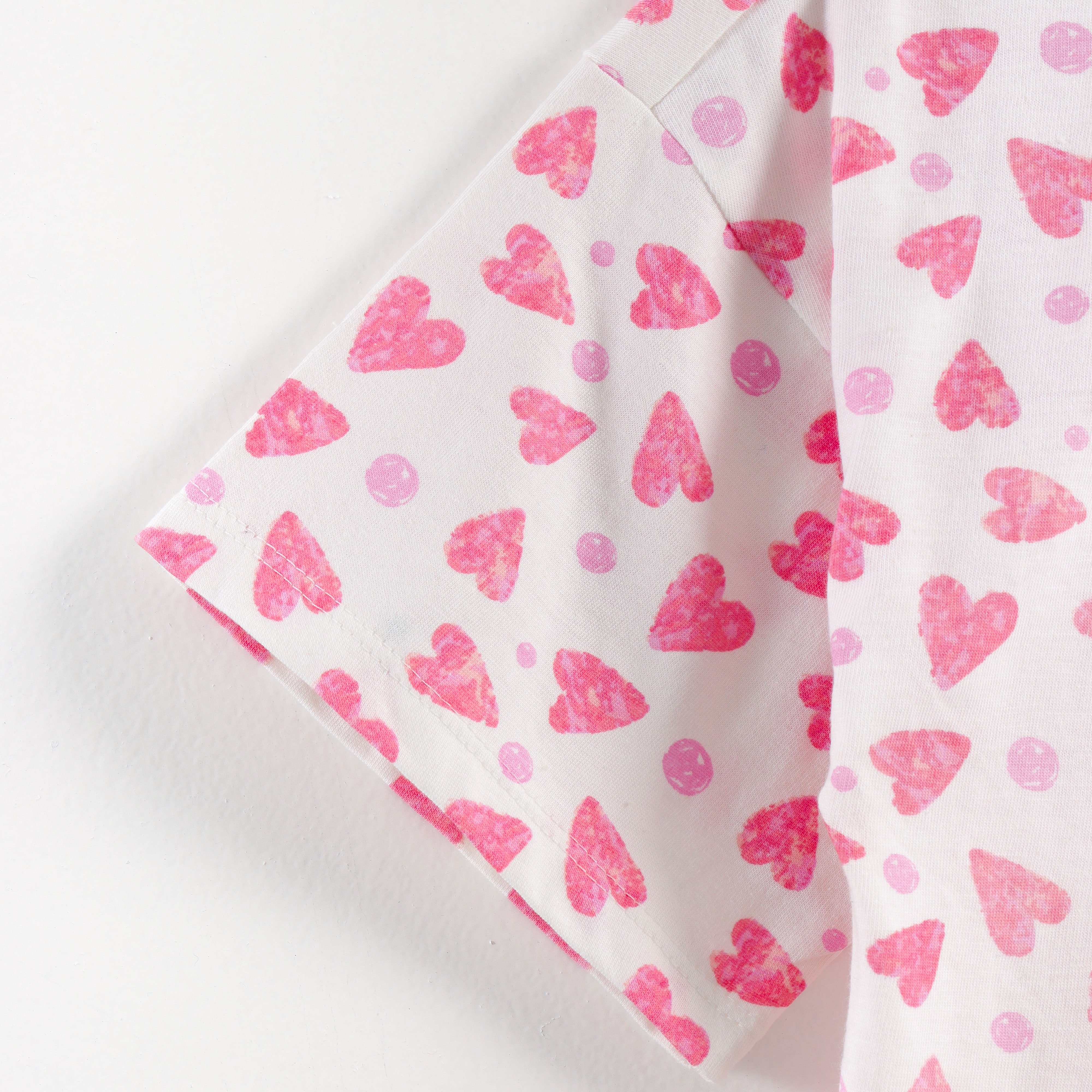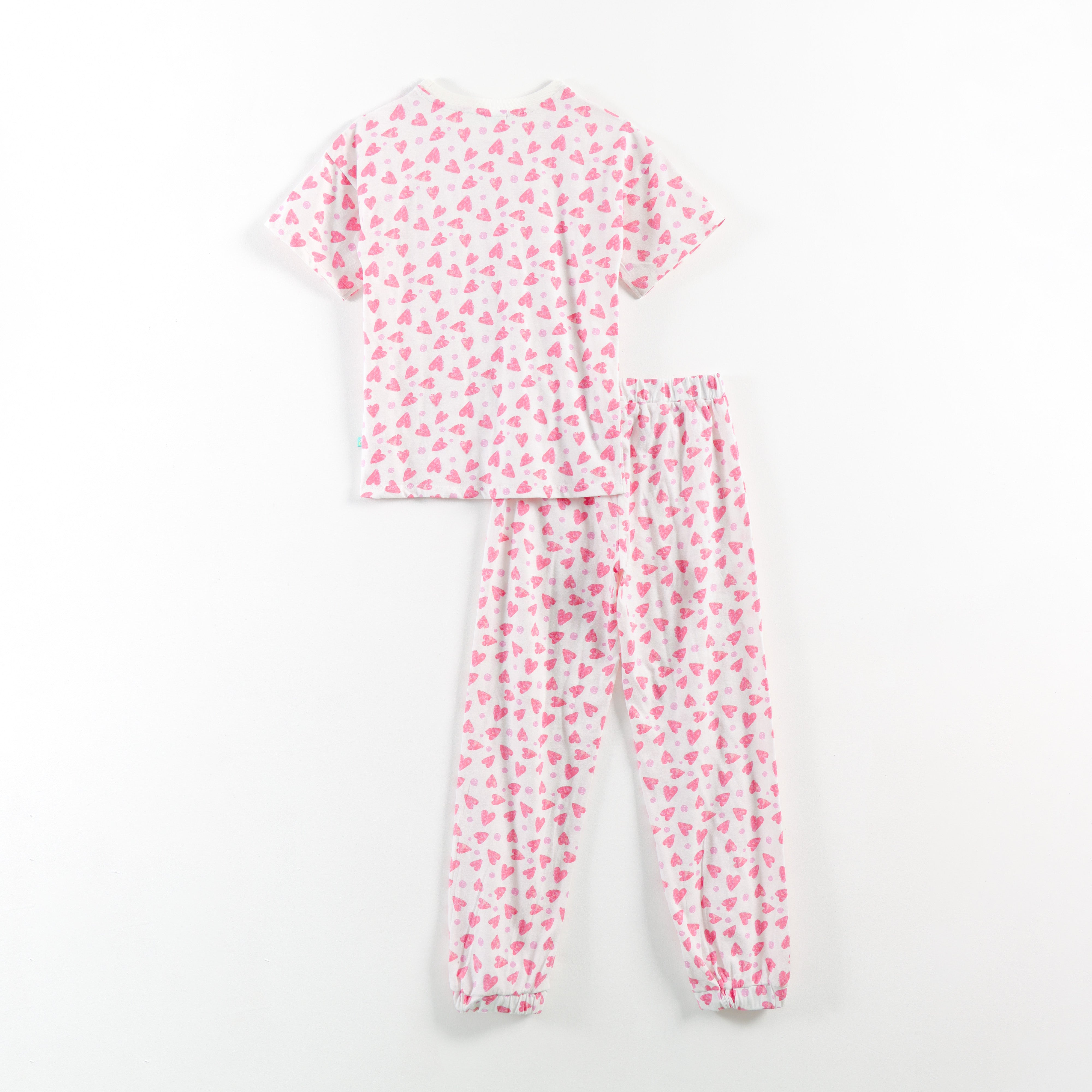 “Girls Soft Cotton Nightwear Set | Pink Heart Printed Half Sleeves T-Shirt & Pajamas"