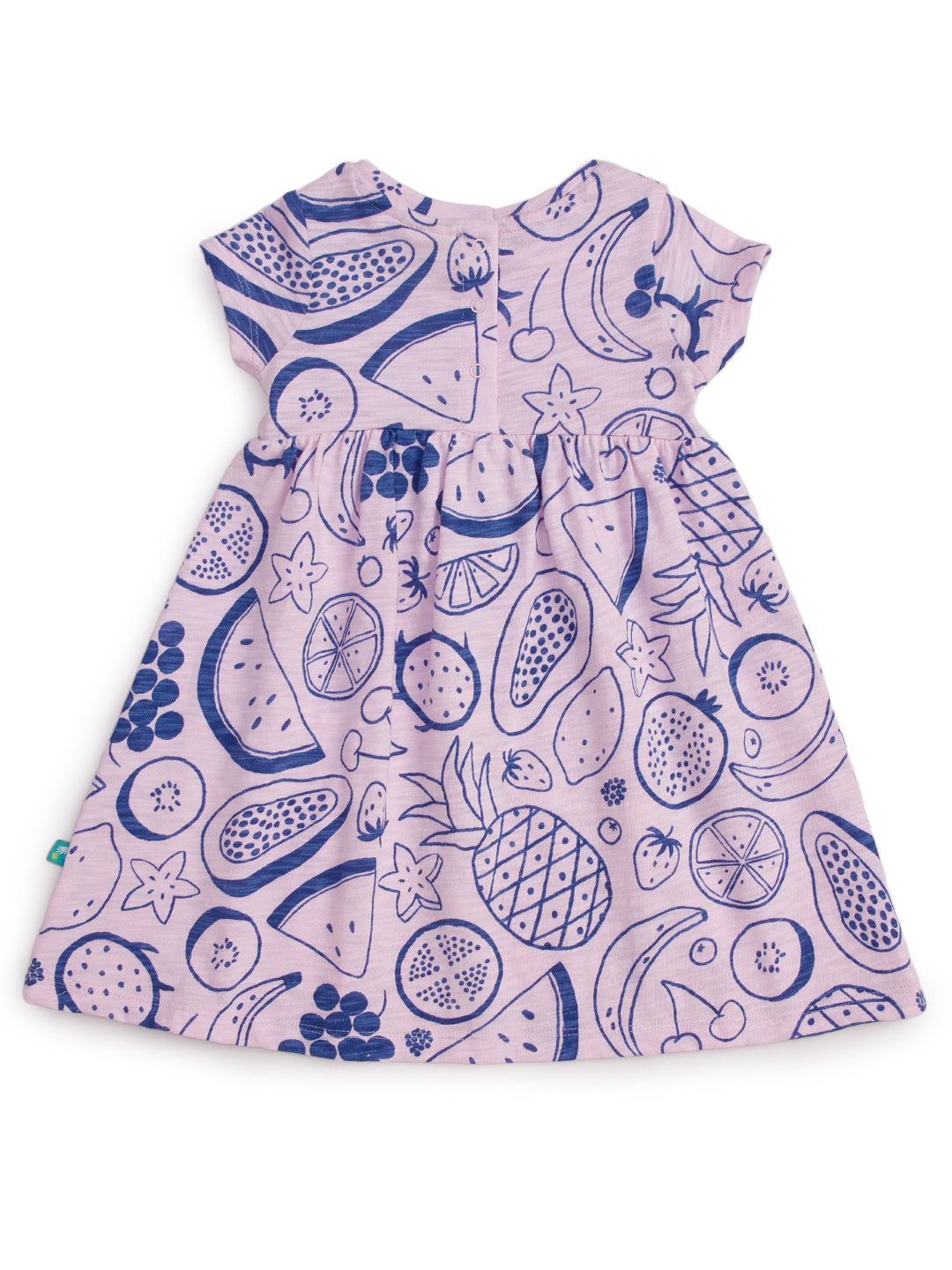 Baby Girls' Lavender Fruit Print Dress – Cotton Short Sleeve
