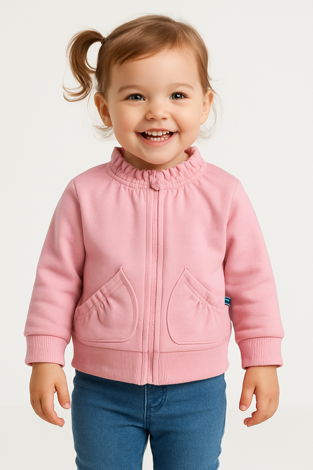 Baby Girls' High-Neck Zip-Up Sweatshirt with Pockets