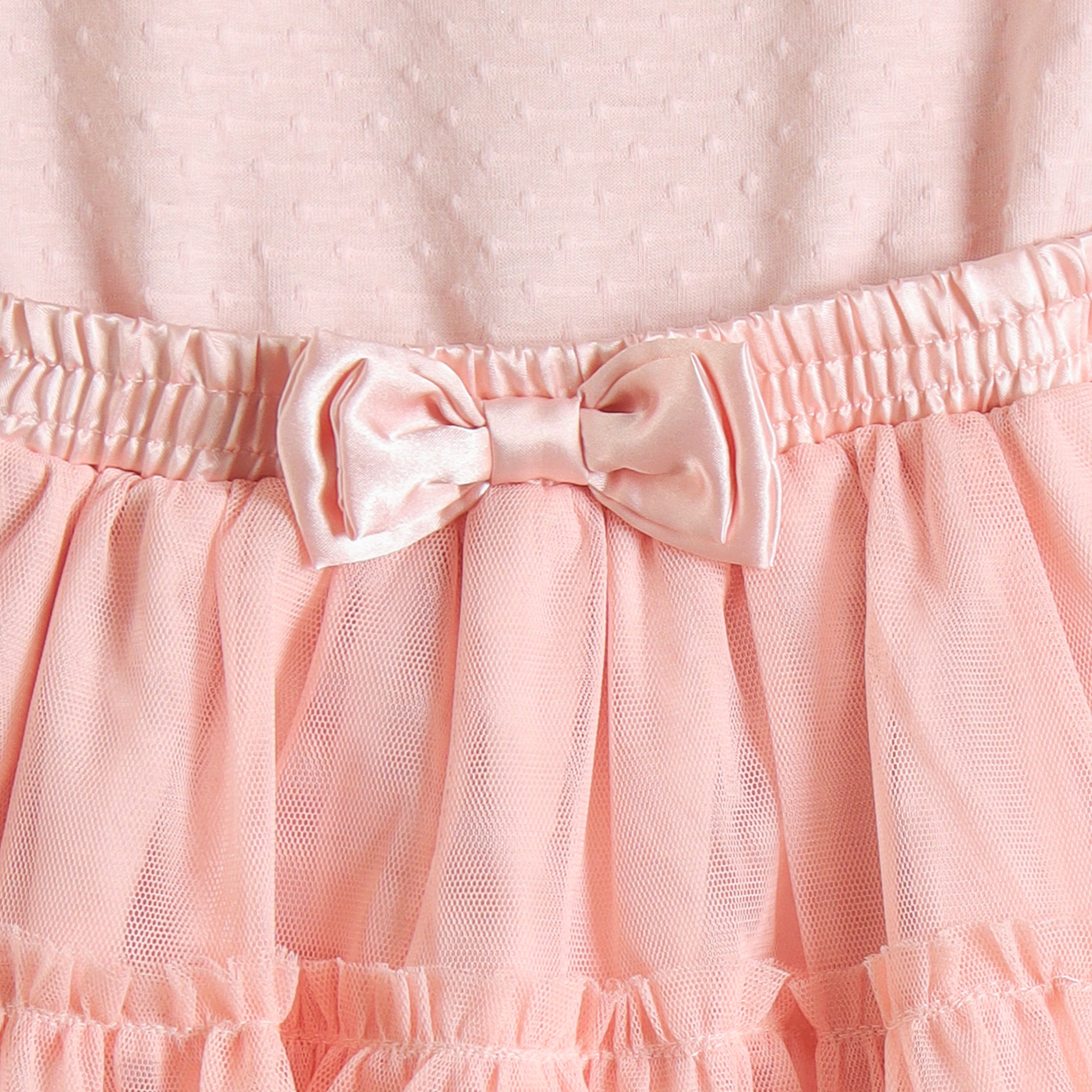 "Girls Pink Princess Party Dress – Layered Net Skirt & Bow Waist"
