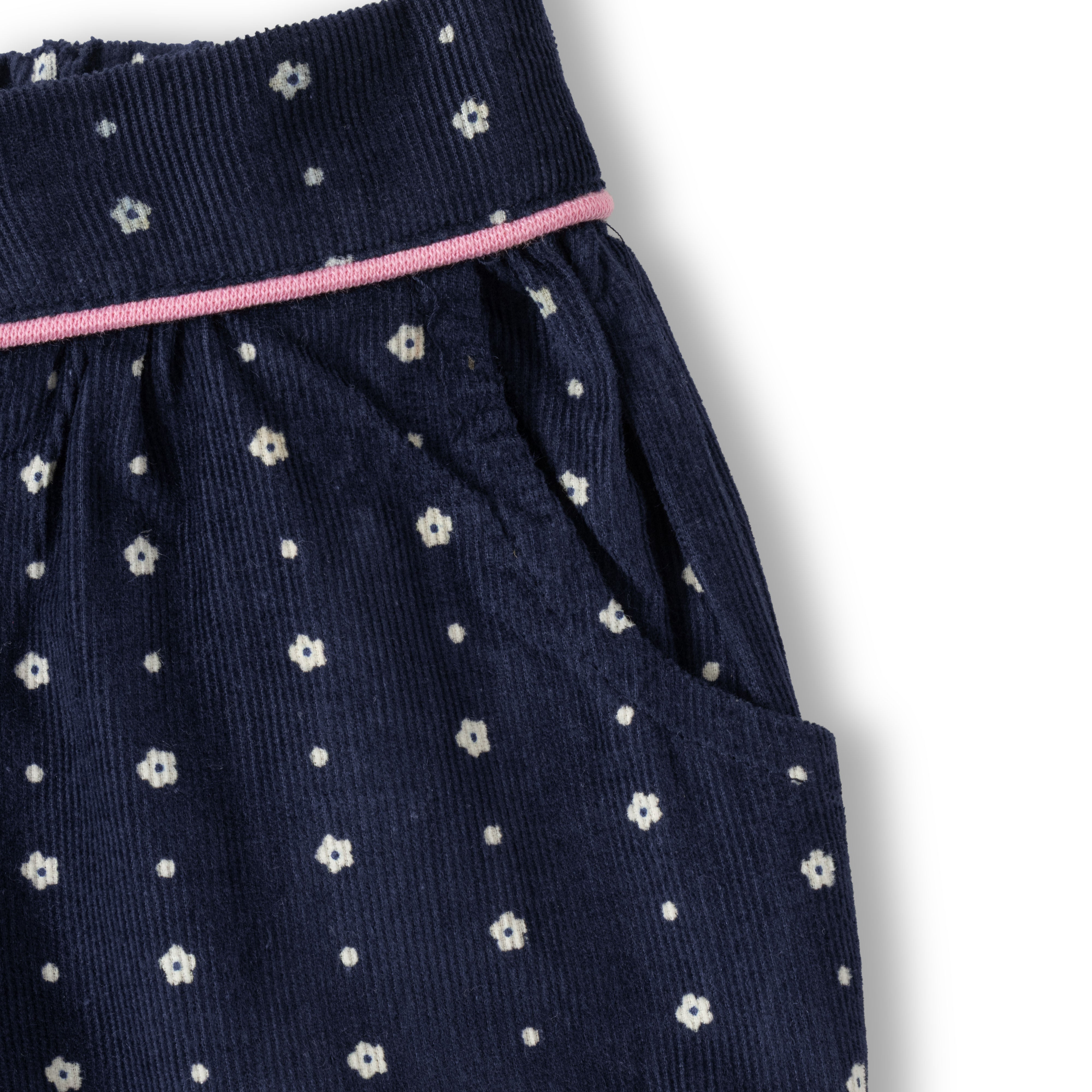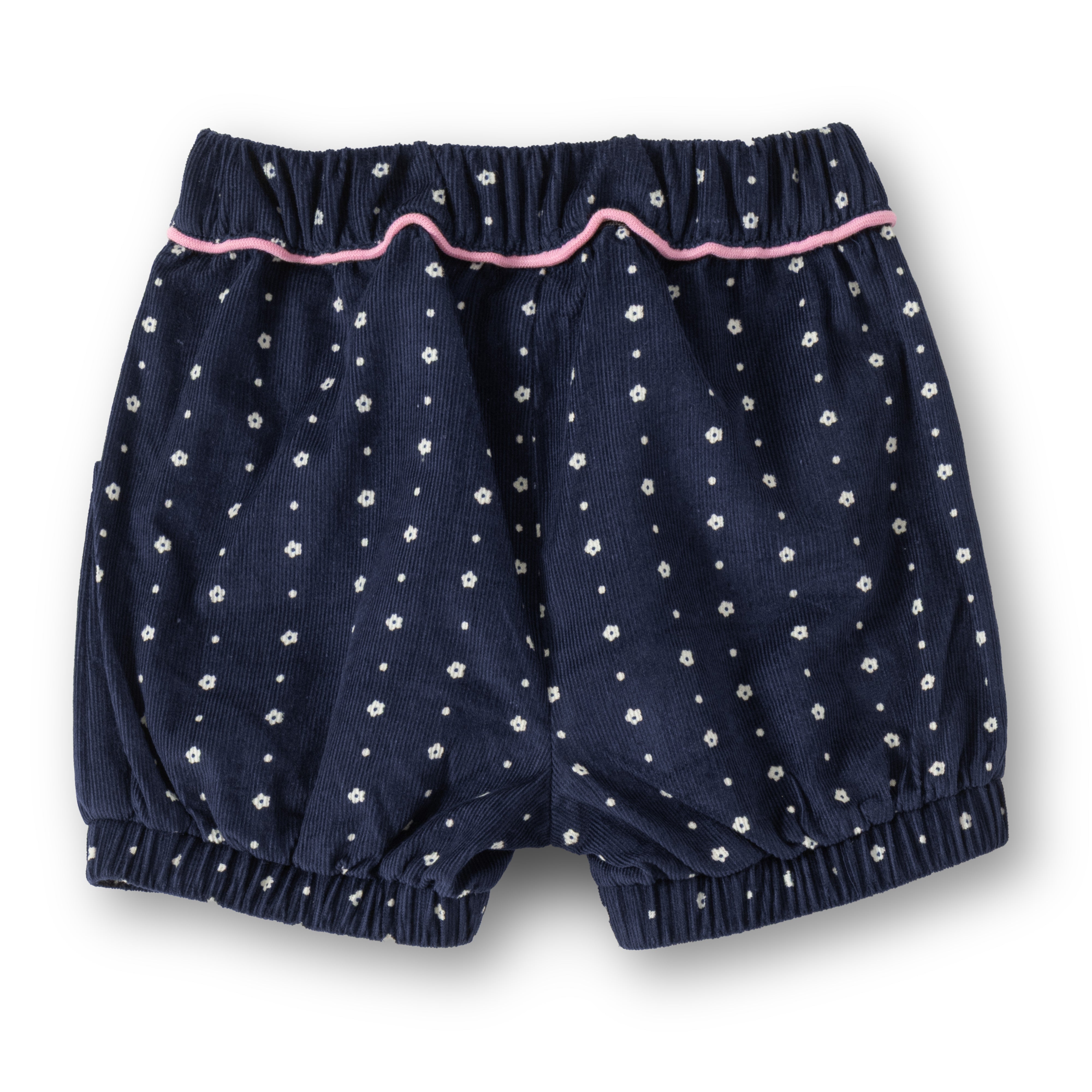 “Baby Girls Navy Blue Printed Corduroy Shorts with Pockets”