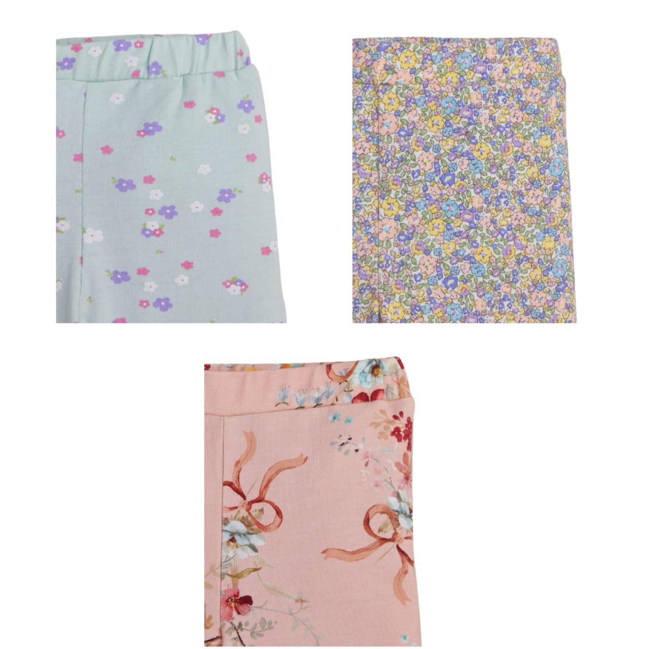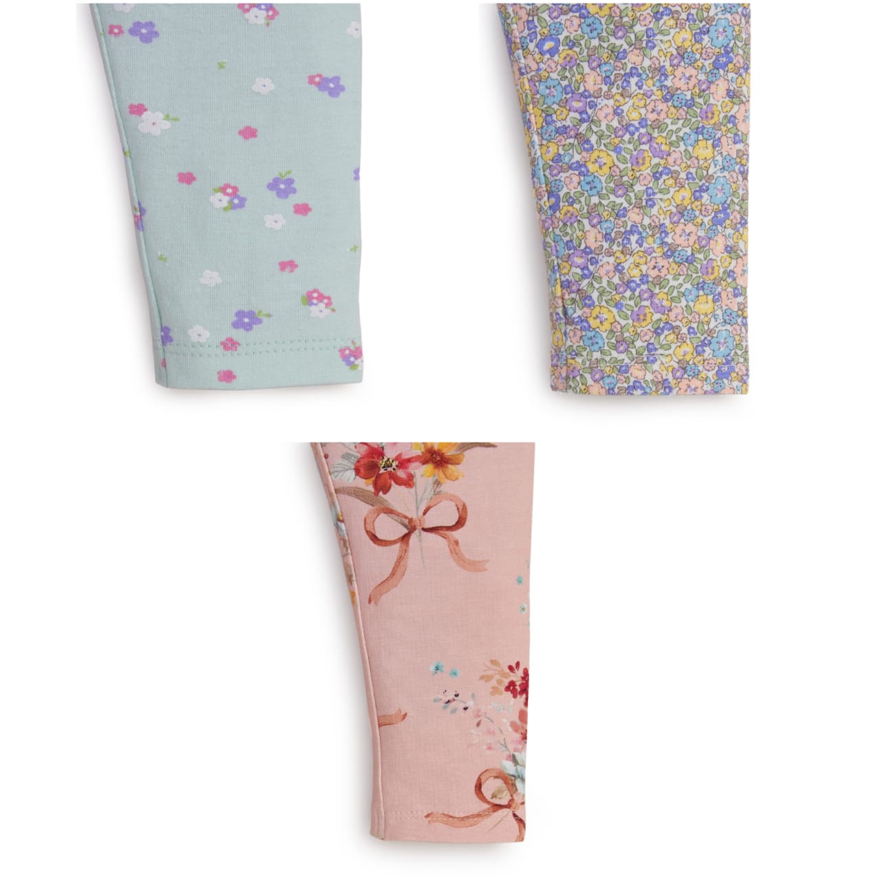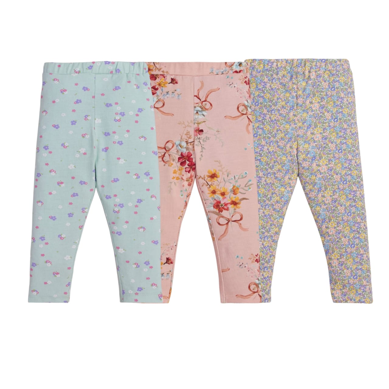 "Girls' Floral Print Leggings - 3-Pack Cotton Stretch Pants"
