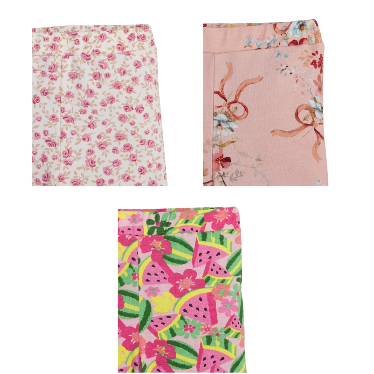 "Girls' Cotton Leggings - 3-Pack Fun Fruit & Floral Print Pants"